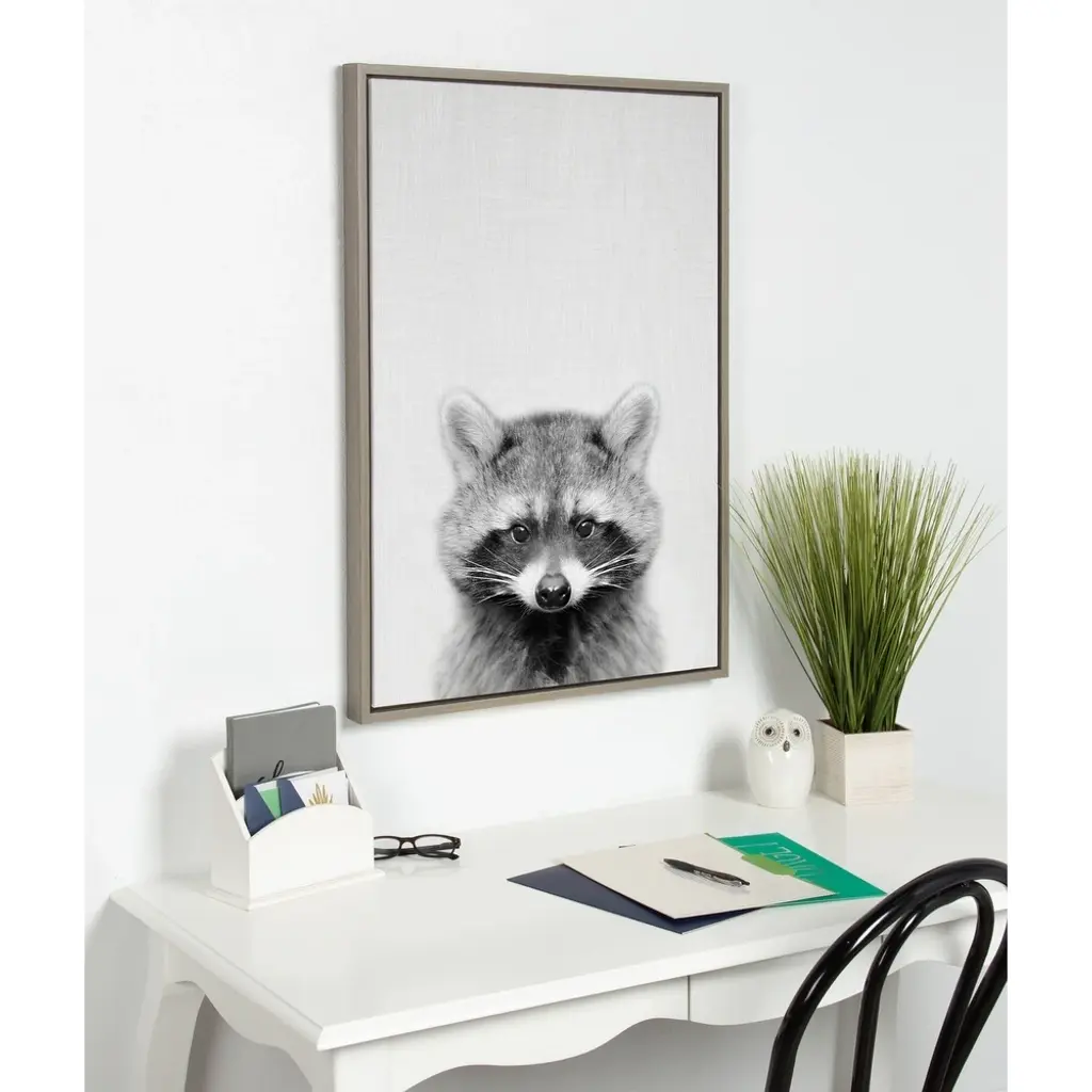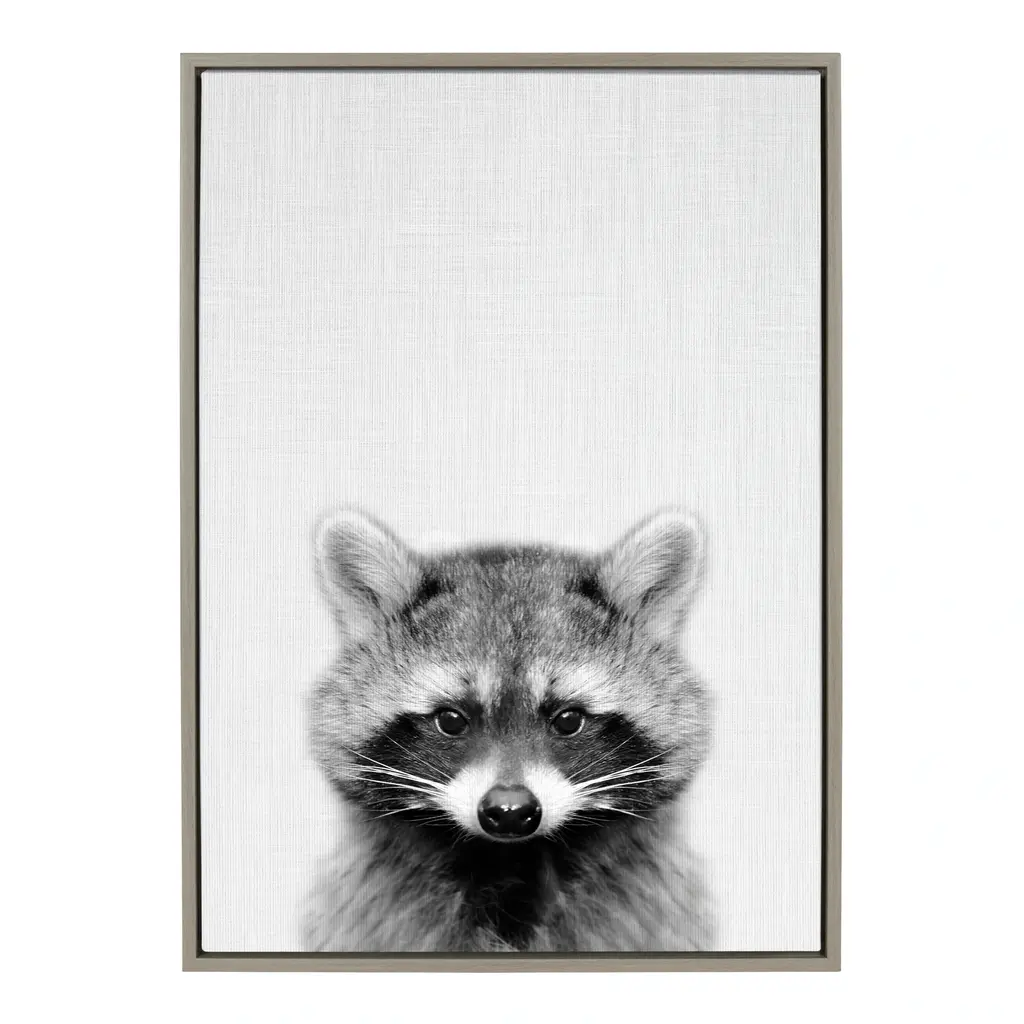 Kate And Laurel Sylvie Raccoon Framed Canvas By Simon Te Tai - 23x33 - Plastic - Grey