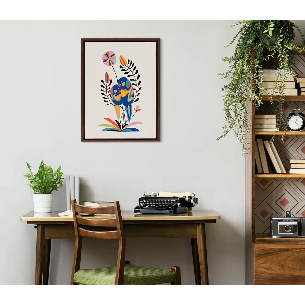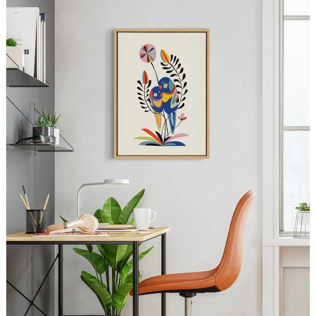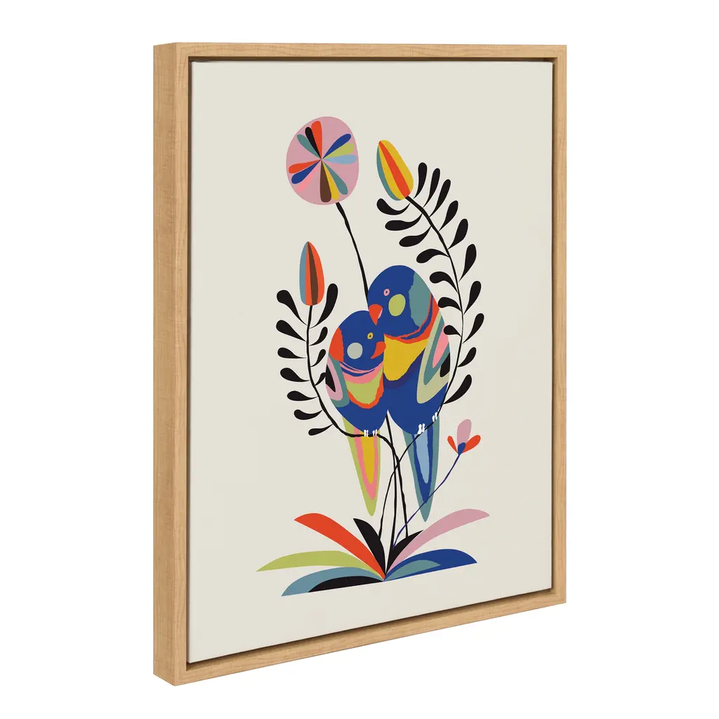 Bring an adorable burst of color into your home with these vibrant little rainbow birds designed by Rachel Lee of My Dream Wall. Framed in the USA in Waunakee, Wisconsin, this floating canvas art will be a pleasure to look at every day in your living room, bedroom, nursery, or any room in the home. Printed on gallery-wrapped canvas and framed with a lightweight polystyrene frame, this wall art has two hangers already attached to the MDF back for easy wall display. The outer dimensions are 24 inches tall by 18 inches wide by 1.63 inches deep. Print Name: "Rainbow Lorikeet"