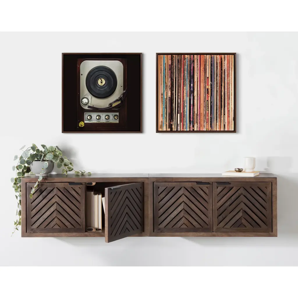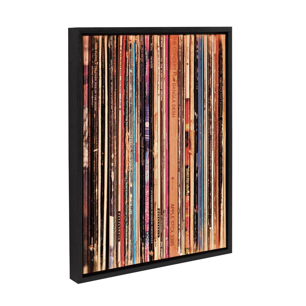 Kate And Laurel Sylvie Record Sleeves Framed Canvas By Robert Cadloff - 18x24 - Plastic - Grey