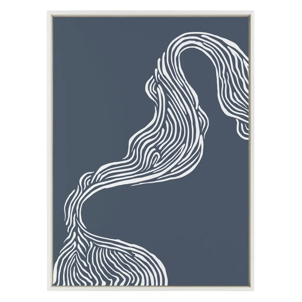 Kate And Laurel Sylvie Rich Blue Abstract River Framed Canvas By The Creative Bunch Studio - 31.5x41.5 - White