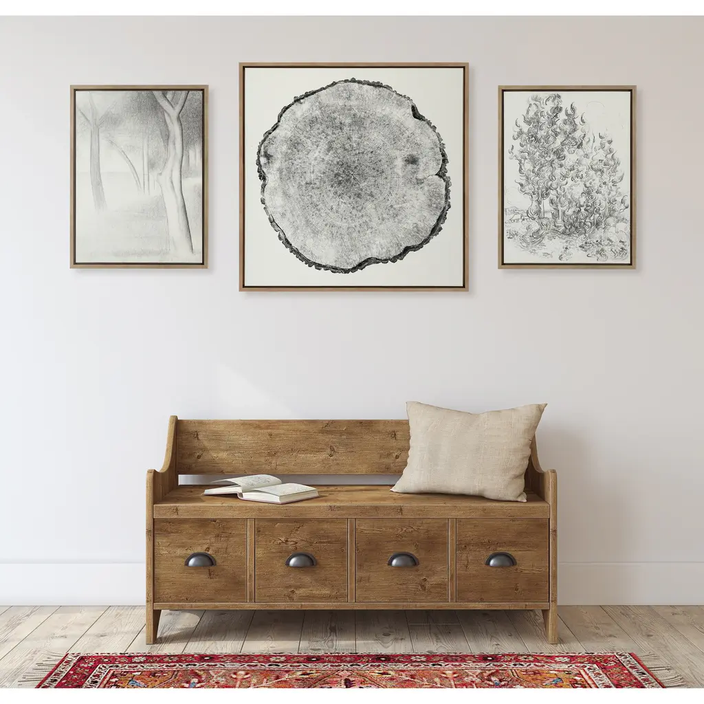 Decorate your home with some natural beauty inspired by the wisdom and long life of the forest. Fits with any decor, it could be Scandinavian, farmhouse, traditional, etc. Framed in a sleek modern frame, this contemporary design is the perfect art piece to add to your home decor collection. Printed and framed in the USA in Waunakee, Wisconsin, this framed linen textured canvas art will be a pleasure to look at every day in your living room, bedroom, office, or any room in the home. This art print also makes an excellent gift for a birthday, holiday, or house-warming. It has two hangers already attached for easy wall display. The outer dimensions are 30 inches by 30 inches by 1.63 inches. Print Name: "Tree Rings"