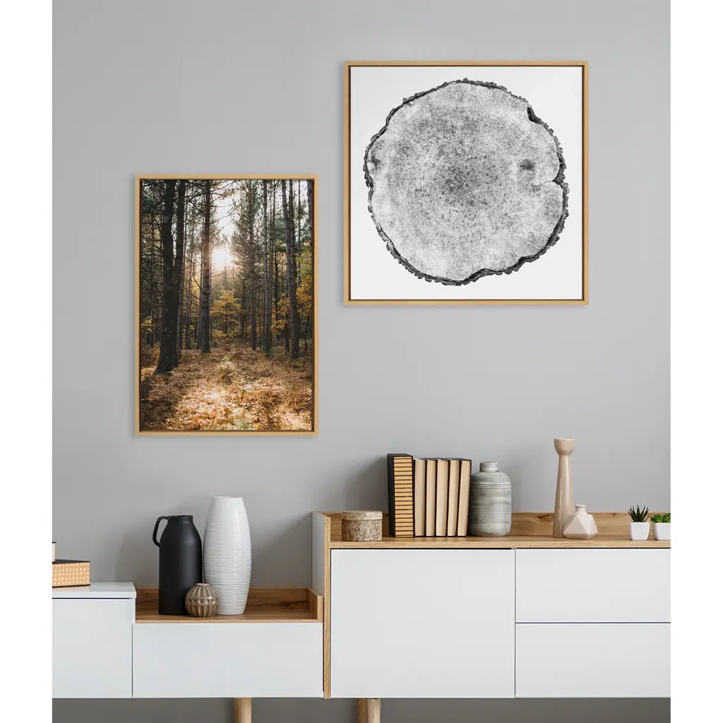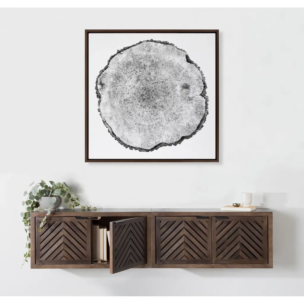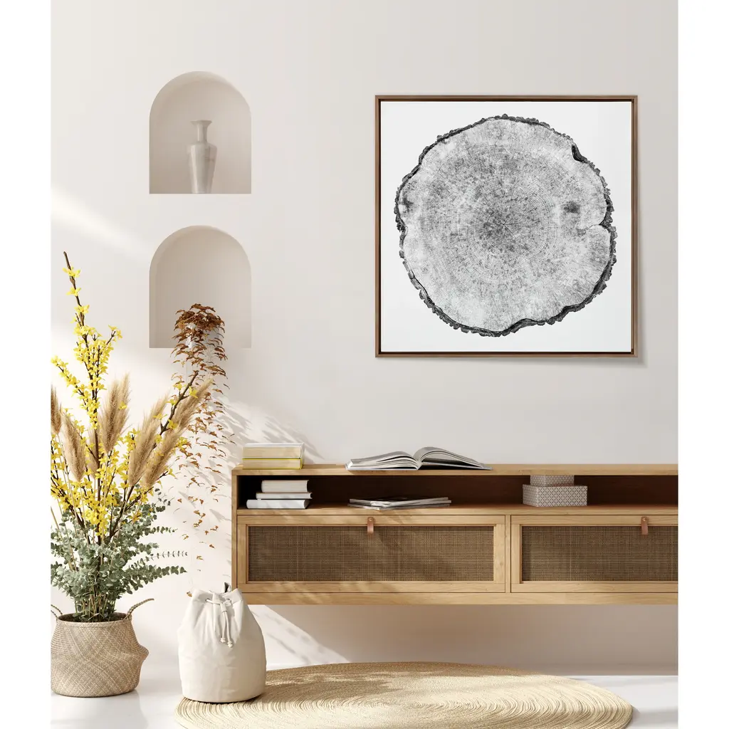 Celebrate the wisdom and beauty of nature with this lovely tree ring art by F2Images. Framed in the USA in Waunakee, Wisconsin, this floating canvas art will be a pleasure to look at every day in your living room, bedroom, office, or any room in the home. This art print also makes an excellent gift for birthdays, holidays, or house-warming parties. Printed on gallery-wrapped canvas and framed with a lightweight polystyrene frame, this wall art has two hangers already attached to the MDF back for easy wall display. The outer dimensions are 30 inches by 30 inches by 1.63 inches. Print Name: "Tree Rings"