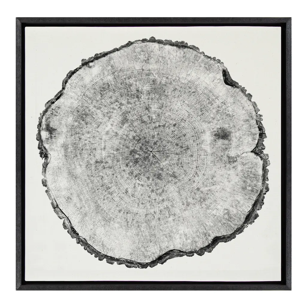 Decorate your home with some natural beauty inspired by the wisdom and long life of the forest. Fits with any decor, it could be Scandinavian, farmhouse, traditional, etc. Framed in a sleek modern frame, this contemporary design is the perfect art piece to add to your home decor collection. Printed and framed in the USA in Waunakee, Wisconsin, this framed linen textured canvas art will be a pleasure to look at every day in your living room, bedroom, office, or any room in the home. This art print also makes an excellent gift for a birthday, holiday, or house-warming. It has two hangers already attached for easy wall display. The outer dimensions are 30 inches by 30 inches by 1.63 inches. Print Name: "Tree Rings"