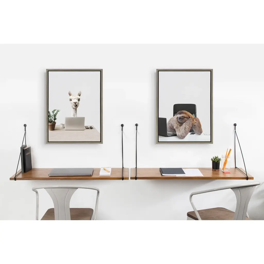 'I'm Sam the Sloth and I work in shipping. I know what your thinking, who puts a slow sleepy sloth in charge of shipping? Well someone did and all I have to say is, I'm more about efficiency than speed." Where ever your office is, The Creative Bunch studio has created the perfect office art for your space. Add one or multiple animals to your walls to create the most fun whimsical environment. Framed in the USA in Waunakee, Wisconsin, this floating canvas art will be a pleasure to look at every day in your living room, bedroom, nursery, or any room in the home. This art print also makes an excellent gift for birthdays, holidays, or house-warming parties. Printed on gallery-wrapped canvas and framed with a lightweight polystyrene frame, this wall art has two hangers already attached to the MDF back for easy wall display. The outer dimensions are 24 inches by 18 inches by 1.63 inches. Print Name: "Sam Director of Shipping"
