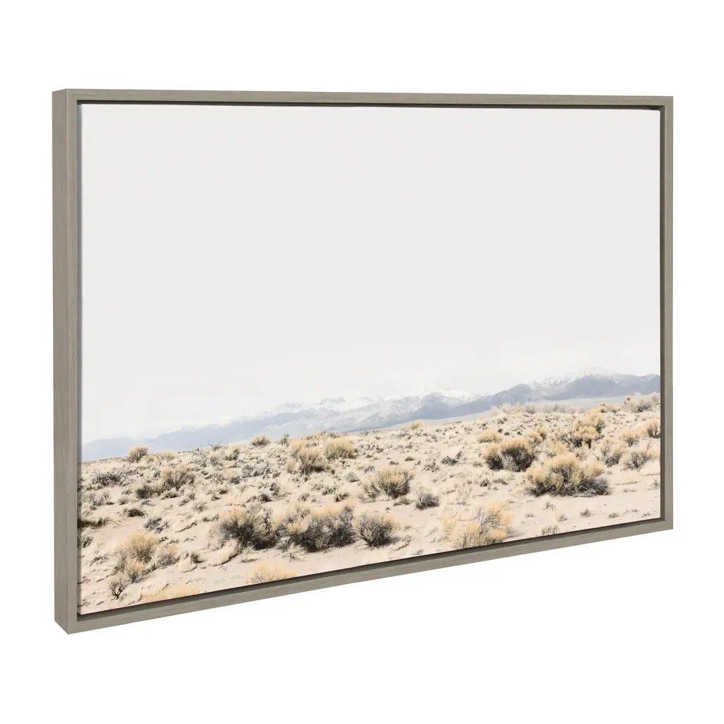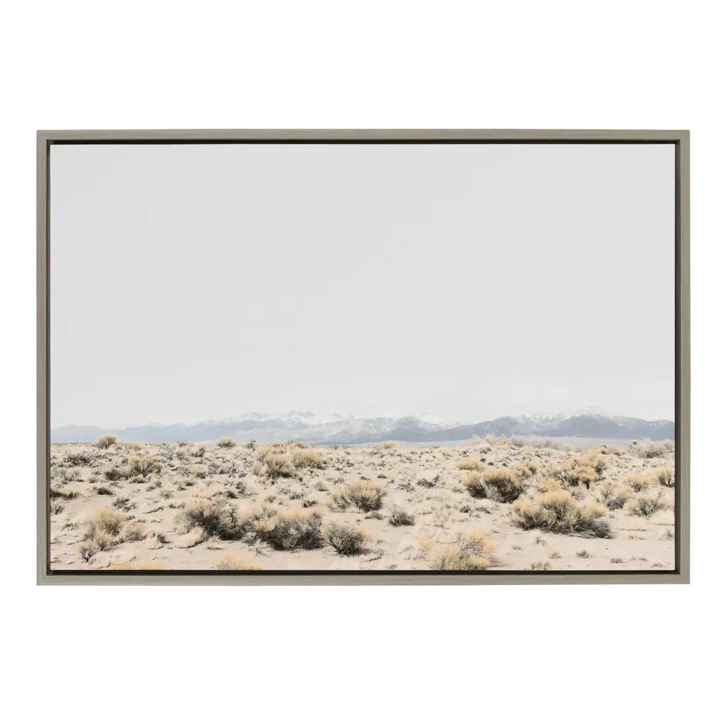 Bring the mystifying beauty and warmth of the desert into your home with this bold landscape print of the San Luis Vallery. Framed in the USA in Waunakee, Wisconsin, this floating canvas art will be a pleasure to look at every day in your living room, bedroom, office, or any room in the home. This art print also makes an excellent gift for birthdays, holidays, or house-warming parties. Printed on gallery-wrapped canvas and framed with a lightweight polystyrene frame, this wall art has two hangers already attached to the MDF back for easy wall display. The outer dimensions are 33 inches by 23 inches by 1.6 inches. Print Name: "San Luis Valley"