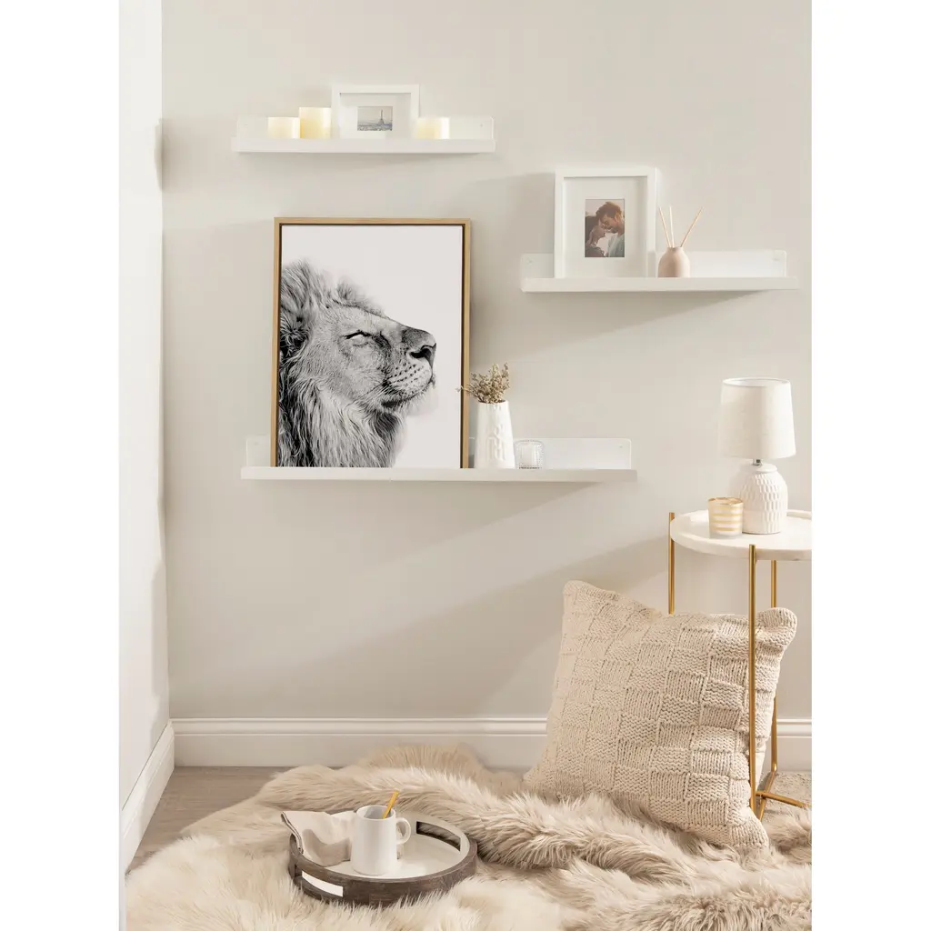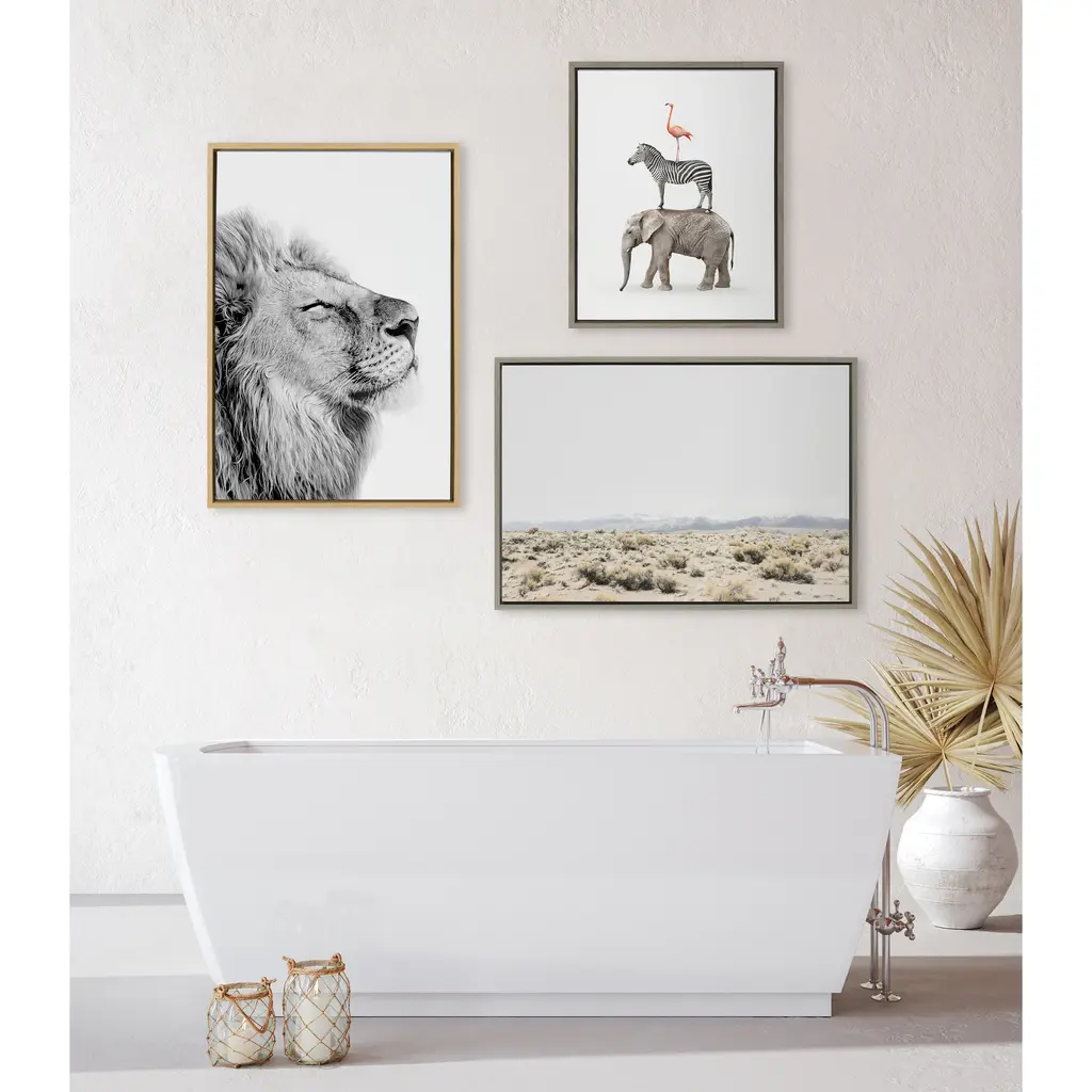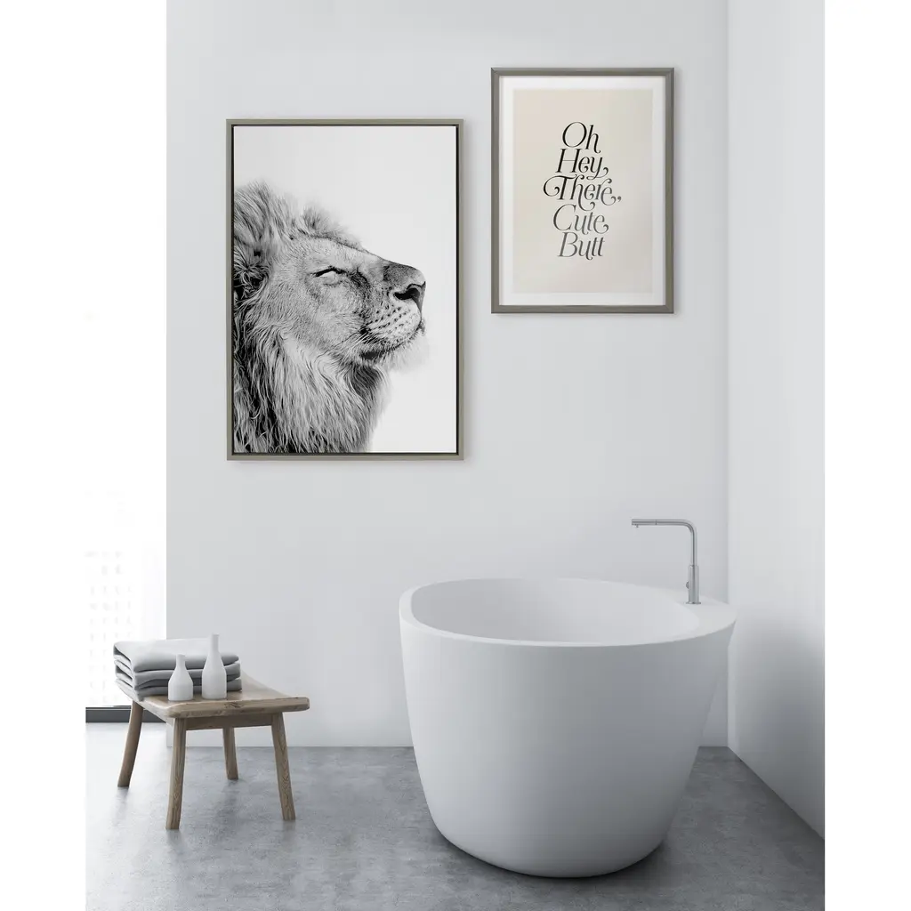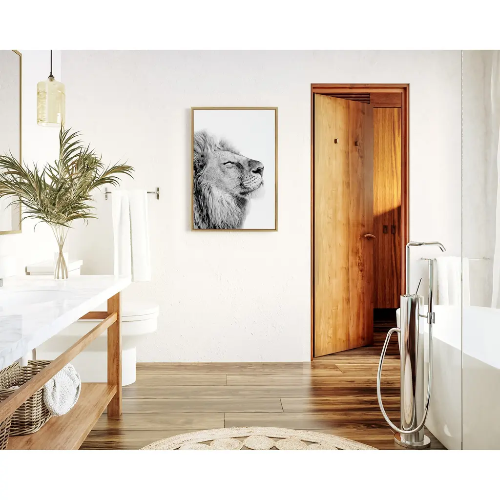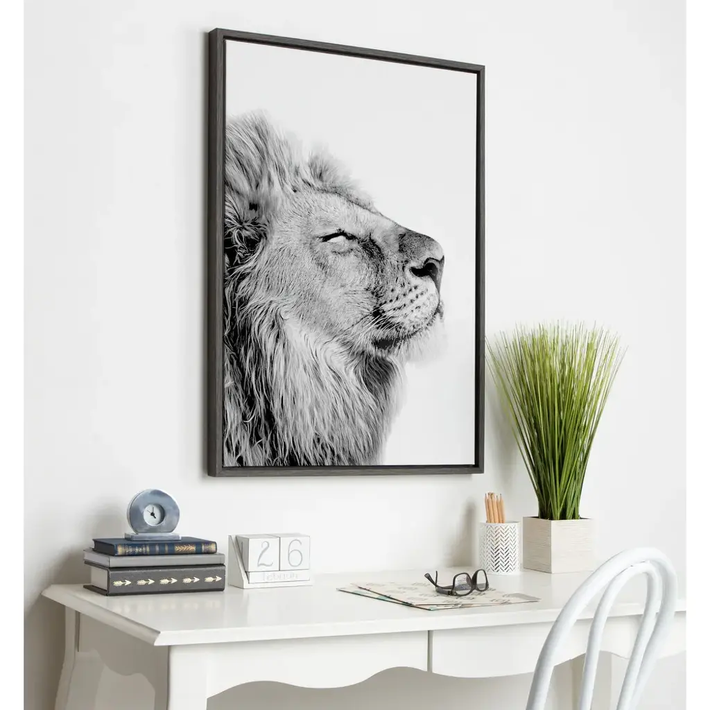 Create an inspirational focal point in your living room with this 'Self Actualizing Lion' wall art by Amy Peterson from Kate and Laurel. Printed on high-grade canvas and framed with grey woodgrain polystyrene, this artwork is durable and accentuates contemporary decor. With two sawtooth hangers on the back, this art comes conveniently ready to hang.