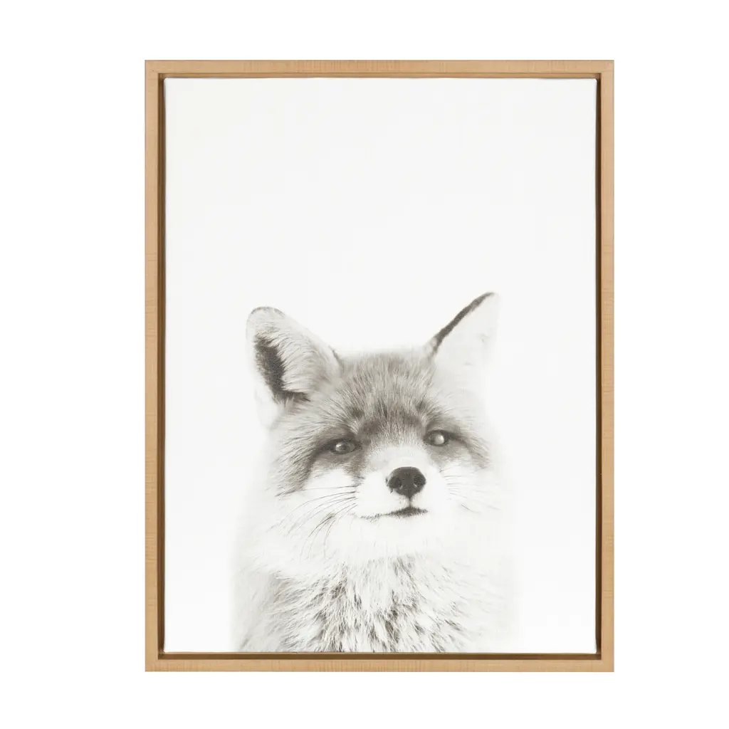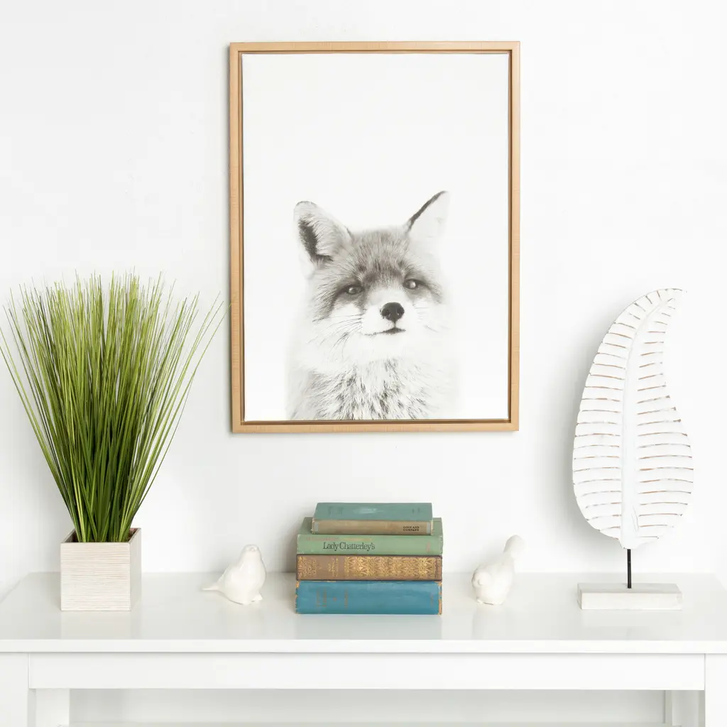 Decorate your wall with the cute fox portrait depicted in this canvas wall art. A plastic frame with a natural wood-grain finish brings out the beauty of this black and white artwork to create a stunning focal point on your wall. Hang this canvas print over your bed or over an accent table in your hallway, or add it to your wall gallery to showcase your love for animals.Shape: RectangleOrientation: VerticalFrame Material: PlasticSubject: Animals, PortraitStyle: Contemporary, Childrens Art, ModernSize: MediumFrame Color: Natural24 in. H x 18 in. W x 1.6 in. L