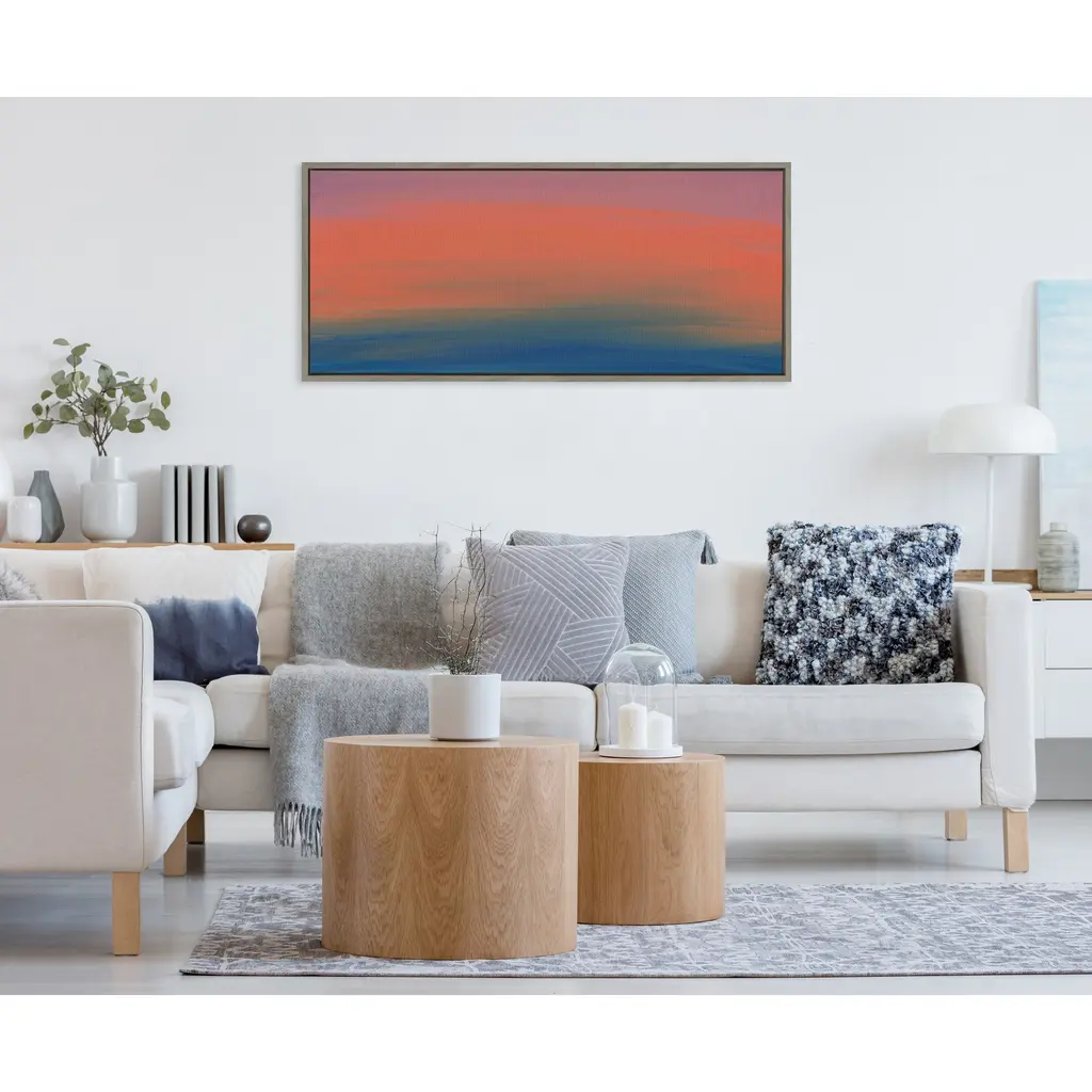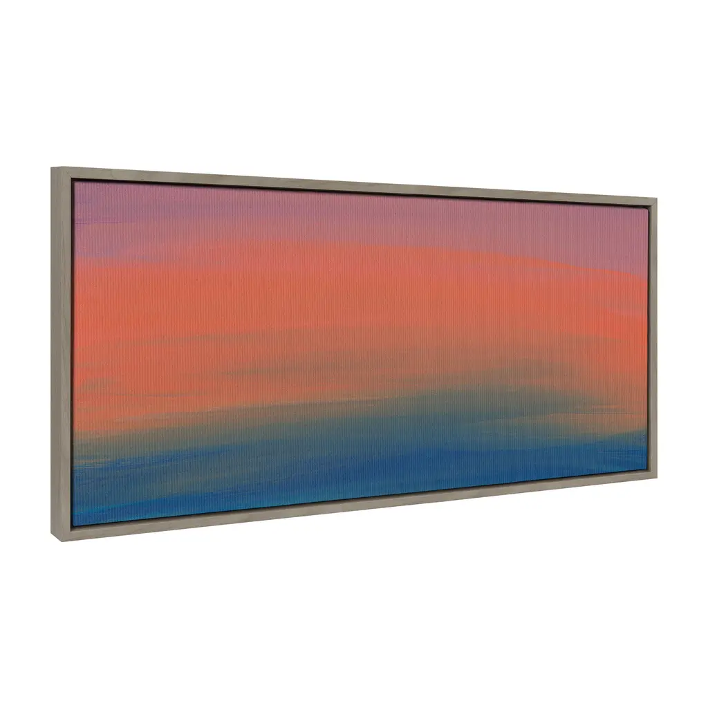 The soft abstract brushstrokes of this sunny wall art by Mentoring Positives create a sense of calm and relaxation. The gray frame is versatile and fits with any home decor style. Framed in the USA in Waunakee, Wisconsin, this modern floating canvas art is sure to bring joy to your space. Our design team curates art that will fit perfectly in any room of your home. Showcase this art in your living room, bedroom, home office, kitchen, bathroom, nursery, or anywhere you want to bring a little beauty and charm to your walls. Specializing in home décor, we are continually bringing timeless works of art for the traditional decorator as well as trend-forward pieces for that eclectic art lover. Our high-quality framed canvas art also makes excellent gifts for birthdays, holidays, or housewarming parties. Printed on gallery-wrapped canvas and framed with a simple gallery frame this wall art is easy to display on the wall and will match with any décor style. The outer dimensions are 18 inches by 40 inches by 1.6 inches. Print Name: "Sunny"