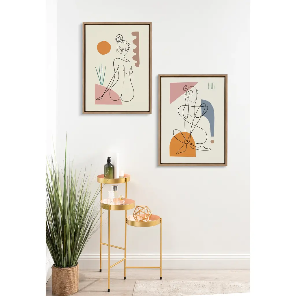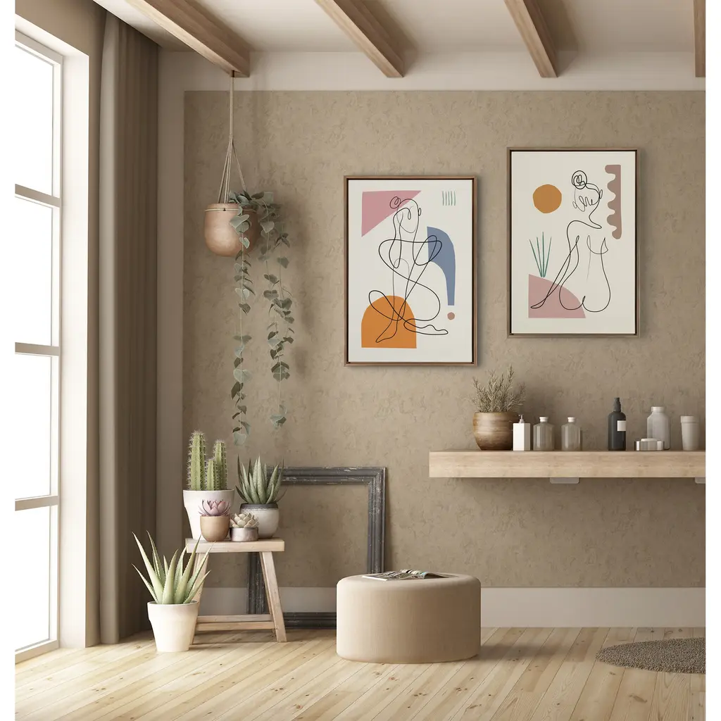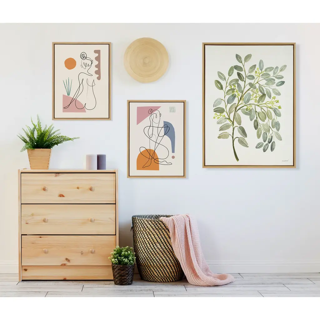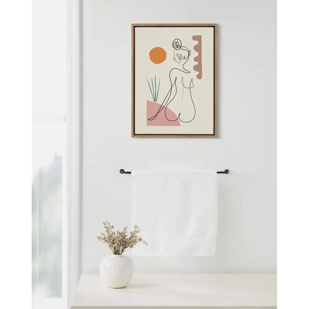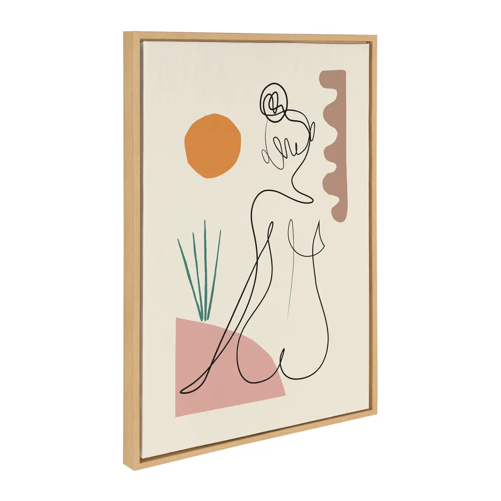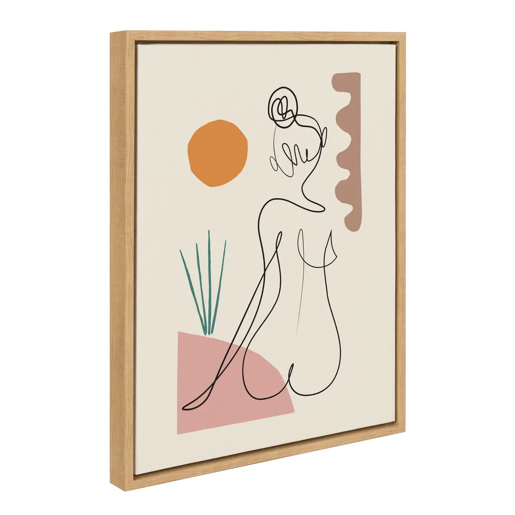 This alluring, avant-garde print captures boho beauty with its feminine subject and bold, abstract design. It's the perfect accent piece to highlight your personal style and give meaning to your wall decor. Framed in the USA in Waunakee, Wisconsin, this floating canvas art will be a pleasure to look at every day in your living room, bedroom, office, or any room in the home. This art print also makes an excellent gift for birthdays, holidays, or house-warming parties. Printed on gallery-wrapped canvas and framed with a lightweight polystyrene frame, this wall art has two hangers already attached to the MDF back for easy wall display. The outer dimensions are 24 inches by 18 inches by 1.6 inches. Print Name: "Sunset"