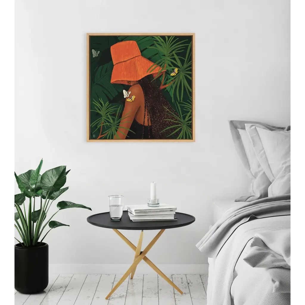 This soft and mesmerizing art print showcases the feminine beauty and inner strength of women within its powerful imagery. Framed in the USA in Waunakee, Wisconsin, this floating canvas art will be a pleasure to look at every day in your living room, bedroom, office, or any room in the home. This art print also makes an excellent gift for birthdays, holidays, or house-warming parties. Printed on gallery-wrapped canvas and framed with a lightweight polystyrene frame, this wall art has two hangers already attached to the MDF back for easy wall display. The outer dimensions are 22 inches by 22 inches by 1.6 inches. Print Name: "Tell Me About Hope"