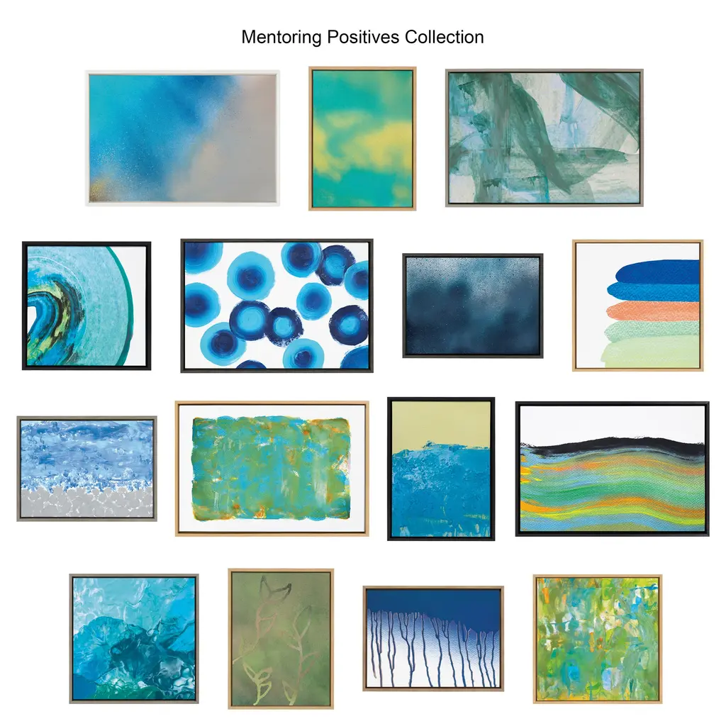 Kate and Laurel partnered with a local youth program called Mentoring Positives to create these stunning works of art. This nonprofit organization is dedicated to building strong trusting relationships, positive attitudes, and life skills in youth through mentoring and social entrepreneurship. This art was created as a career exploration program with Kate and Laurel, where the group was immersed in the product development process from concept to finalization. Framed in a sleek modern frame, this transitional colorful abstract design is the perfect art piece to add to your home decor collection. You can be proud to hang this piece of art in your living room, bedroom, home office, kids room or anywhere. This art print also makes an excellent gift for birthdays, holidays, or house-warmings. The outer dimensions are 23 inches tall by 33 inches wide by 1.6 inches deep.