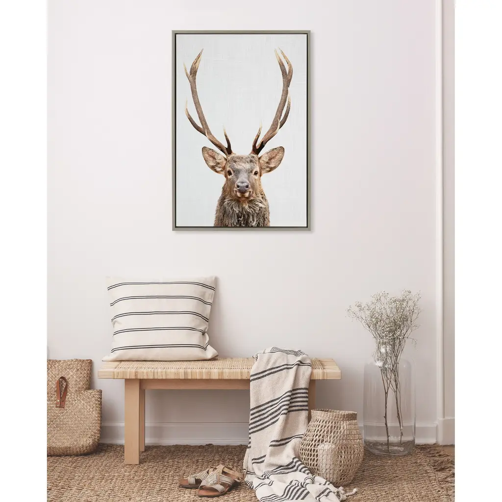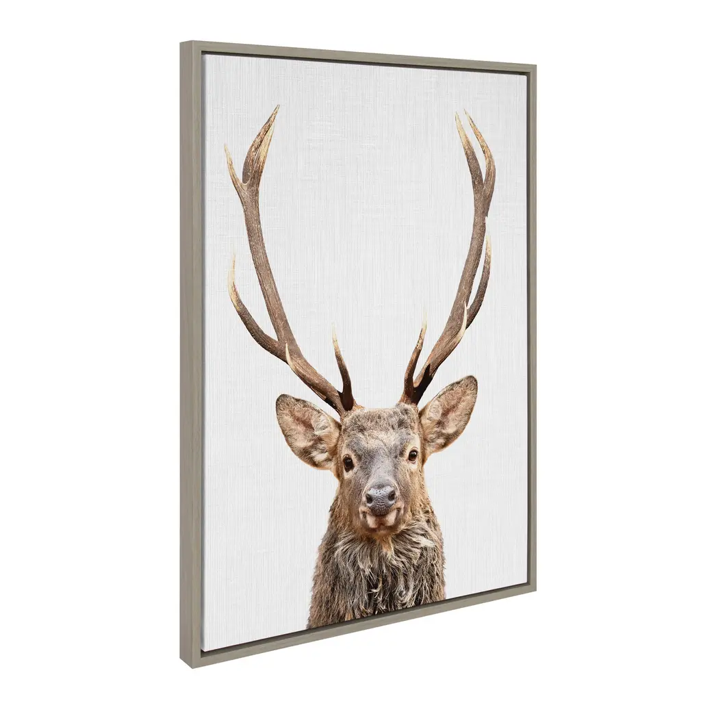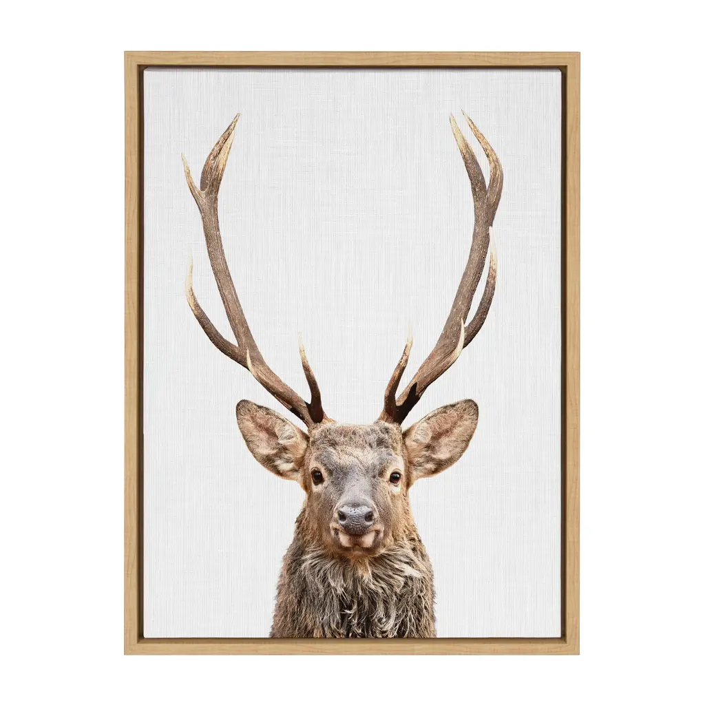 This framed canvas wall art by Simon Te of Tai Prints is a great way to introduce the charm of the forest to your space. Display your love of animals in your home with this powerful deer with antlers portrait. Framed in the USA in Waunakee, Wisconsin, this modern floating canvas art is sure to bring joy to your space. Our design team curates art that will fit perfectly in any room of your home. Showcase this art in your living room, bedroom, home office, kitchen, bathroom, nursery, or anywhere you want to bring a little beauty and charm to your walls. Specializing in home décor, we are continually bringing timeless works of art for the traditional decorator as well as trend-forward pieces for that eclectic art lover. Our high-quality framed canvas art also makes excellent gifts for birthdays, holidays, or housewarming parties. Printed on gallery-wrapped canvas and framed with a simple gallery frame this wall art is easy to display on the wall and will match with any décor style. The outer dimensions are 18 inches by 24 inches by 1.6 inches. Print Name: "The Red Deer Color"