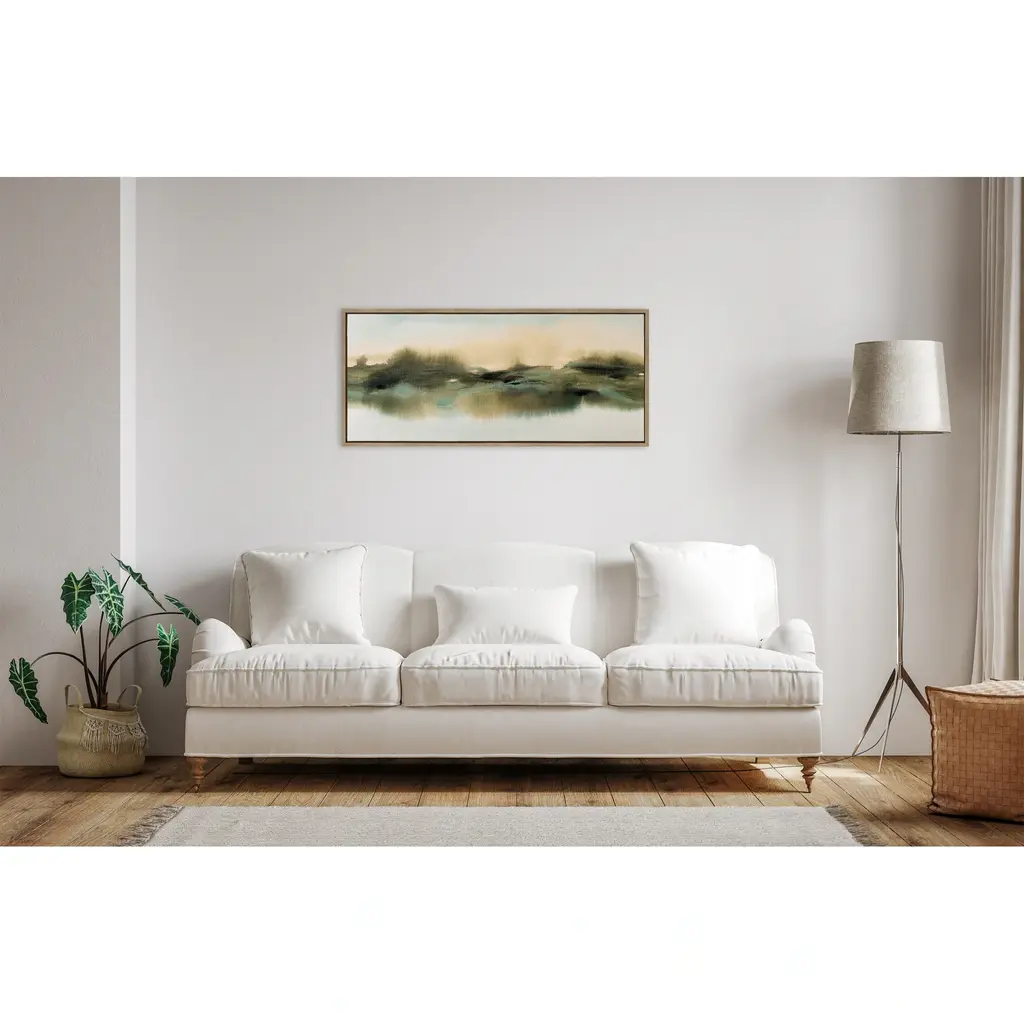 Create a soothing nature display with this charming framed canvas art by Amy Lighthall. This lovely depiction of a meadow fills your space with soft, thoughtful brushstrokes. Framed in the USA in Waunakee, Wisconsin, this modern floating canvas art is sure to bring joy to your space. Our design team curates art that will fit perfectly in any room of your home. Showcase this art in your living room, bedroom, home office, kitchen, bathroom, nursery, or anywhere you want to bring a little beauty and charm to your walls. Specializing in home décor, we are continually bringing timeless works of art for the traditional decorator as well as trend-forward pieces for that eclectic art lover. Our high-quality framed canvas art also makes excellent gifts for birthdays, holidays, or housewarming parties. Printed on gallery-wrapped canvas and framed with a simple gallery frame this wall art is easy to display on the wall and will match with any décor style. The outer dimensions are 18 inches by 40 inches by 1.6 inches. Print Name: "Tranquil Meadows"