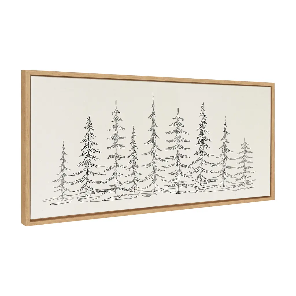 This clean, minimal art print provides your home with a unique look at nature in a sketched design. Framed in the USA in Waunakee, Wisconsin, this floating canvas art will be a pleasure to look at every day in your living room, bedroom, nursery, or any room with a modern look. This art print also makes an excellent gift for birthdays, holidays, or house-warming parties. Printed on gallery-wrapped canvas and framed with a lightweight polystyrene frame, this wall art has two hangers already attached to the MDF back for easy wall display. The outer dimensions are 30 inches tall by 30 inches wide by 1.63 inches deep. Print Name: "Minimalist Evergreen Trees Sketch"