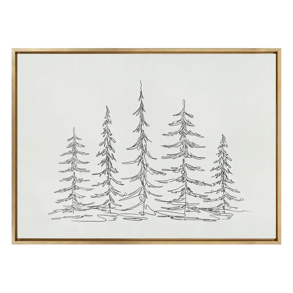 This clean, minimal art print provides your home with a unique look at nature in a sketched design. Framed in the USA in Waunakee, Wisconsin, this floating canvas art will be a pleasure to look at every day in your living room, bedroom, nursery, or any room with a modern look. This art print also makes an excellent gift for birthdays, holidays, or house-warming parties. Printed on gallery-wrapped canvas and framed with a lightweight polystyrene frame, this wall art has two hangers already attached to the MDF back for easy wall display. The outer dimensions are 30 inches tall by 30 inches wide by 1.63 inches deep. Print Name: "Minimalist Evergreen Trees Sketch"
