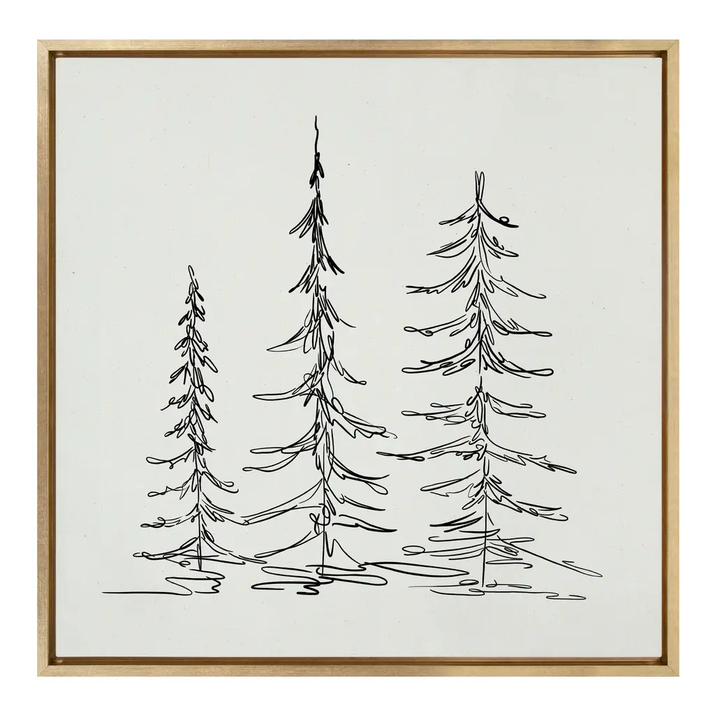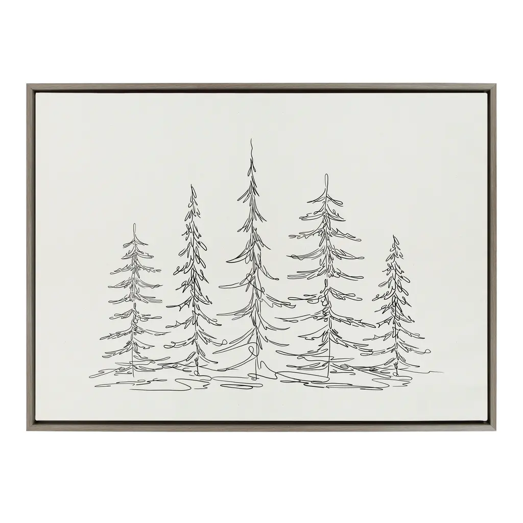 This clean, minimal art print provides your home with a unique look at nature in a sketched design. Framed in the USA in Waunakee, Wisconsin, this floating canvas art will be a pleasure to look at every day in your living room, bedroom, nursery, or any room with a modern look. This art print also makes an excellent gift for birthdays, holidays, or house-warming parties. Printed on gallery-wrapped canvas and framed with a lightweight polystyrene frame, this wall art has two hangers already attached to the MDF back for easy wall display. The outer dimensions are 30 inches tall by 30 inches wide by 1.63 inches deep. Print Name: "Minimalist Evergreen Trees Sketch"