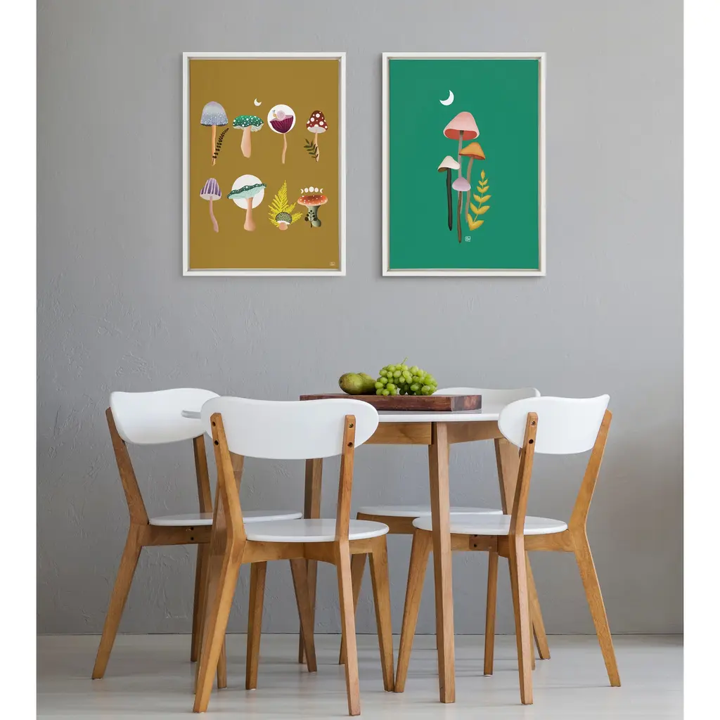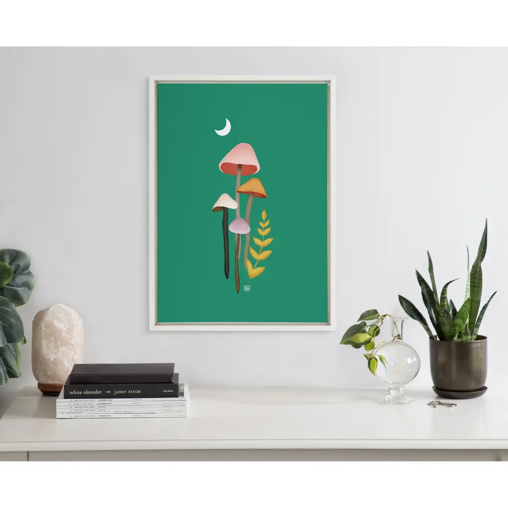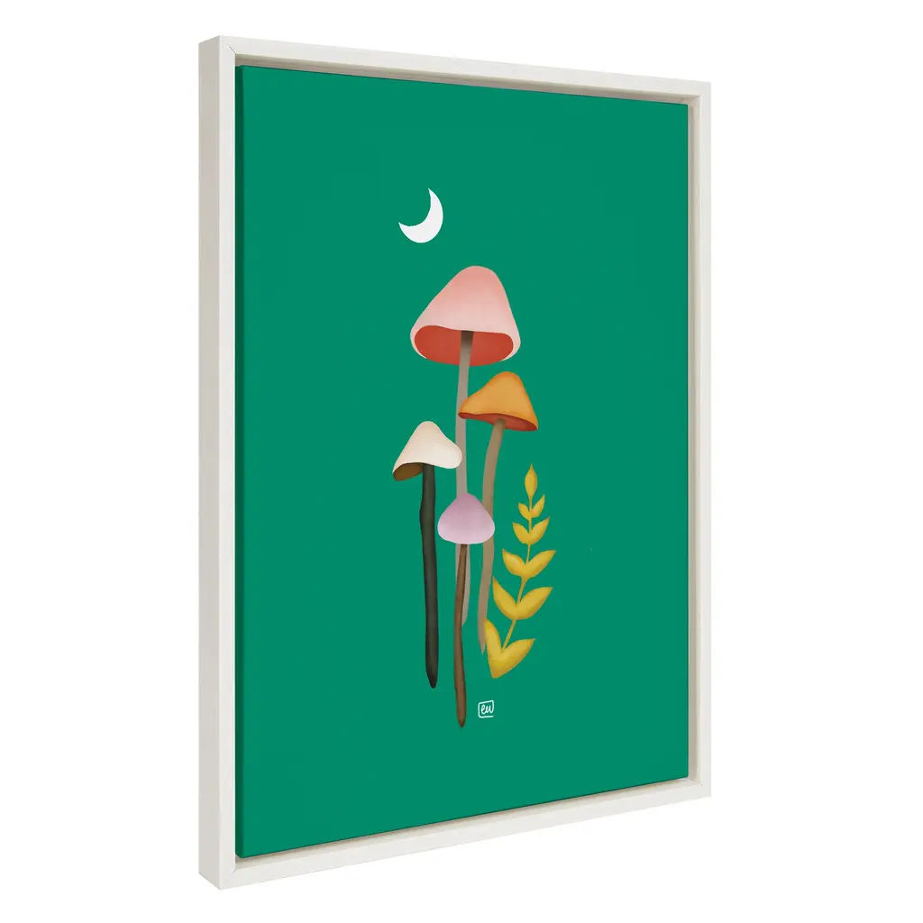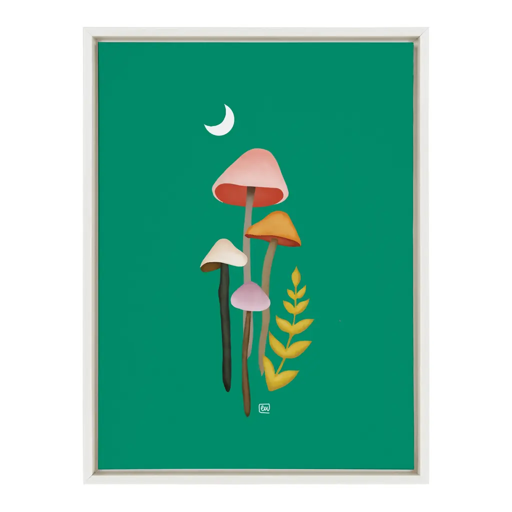 Goblincore anyone? Check out this whimsical nature art print Framed in the USA in Waunakee, Wisconsin, this floating canvas art will be a pleasure to look at every day in your living room, bedroom, nursery, or any room in the home. This art print also makes an excellent gift for birthdays, holidays, or house-warming parties. Printed on gallery-wrapped canvas and framed with a lightweight polystyrene frame, this wall art has two hangers already attached to the MDF back for easy wall display. The outer dimensions are 24 inches by 18 inches by 1.6 inches. Print Name: "Tye Dye Fungi"