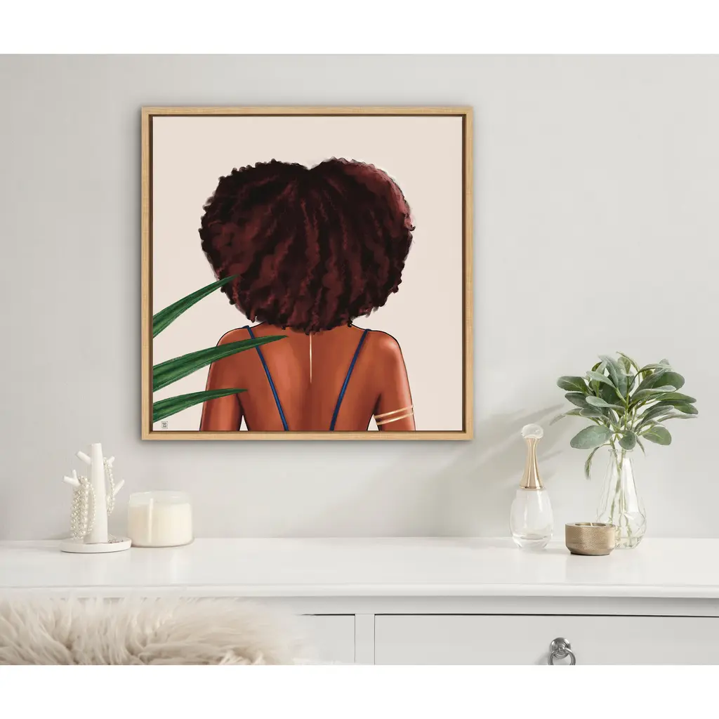 Embrace the power of the feminine form with this lovely art print by Mary Joak. Framed in the USA in Waunakee, Wisconsin, this floating canvas art will be a pleasure to look at every day in your living room, bedroom, office, or any room in the home. This art print also makes an excellent gift for birthdays, holidays, or house-warming parties. Printed on gallery-wrapped canvas and framed with a lightweight polystyrene frame, this wall art has two hangers already attached to the MDF back for easy wall display. The outer dimensions are 22 inches by 22 inches by 1.6 inches. Print Name: "Whatever You Want"
