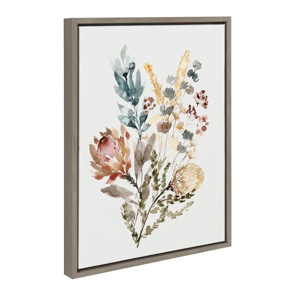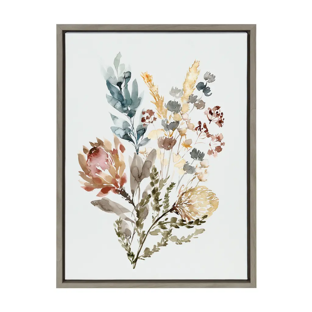 Kate And Laurel Sylvie Wildflower Bunch Framed Canvas By Sara Berrenson - 18x24 - Plastic - Grey