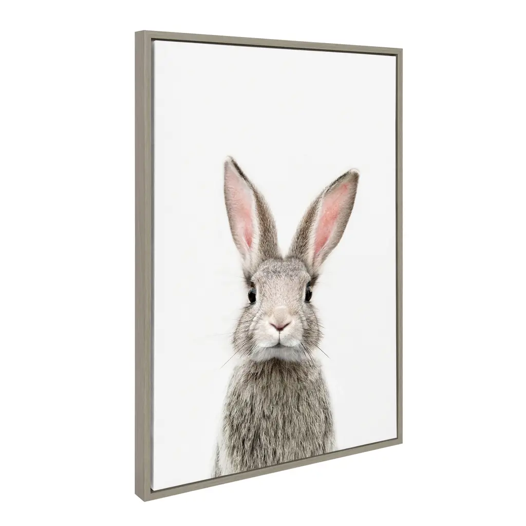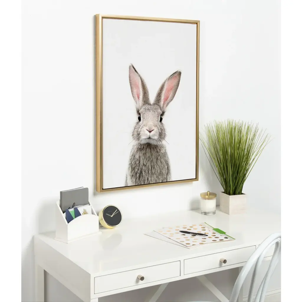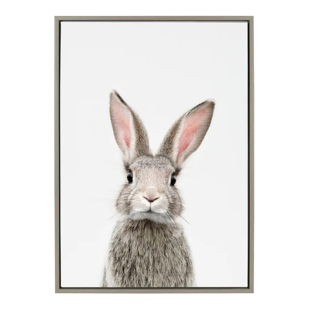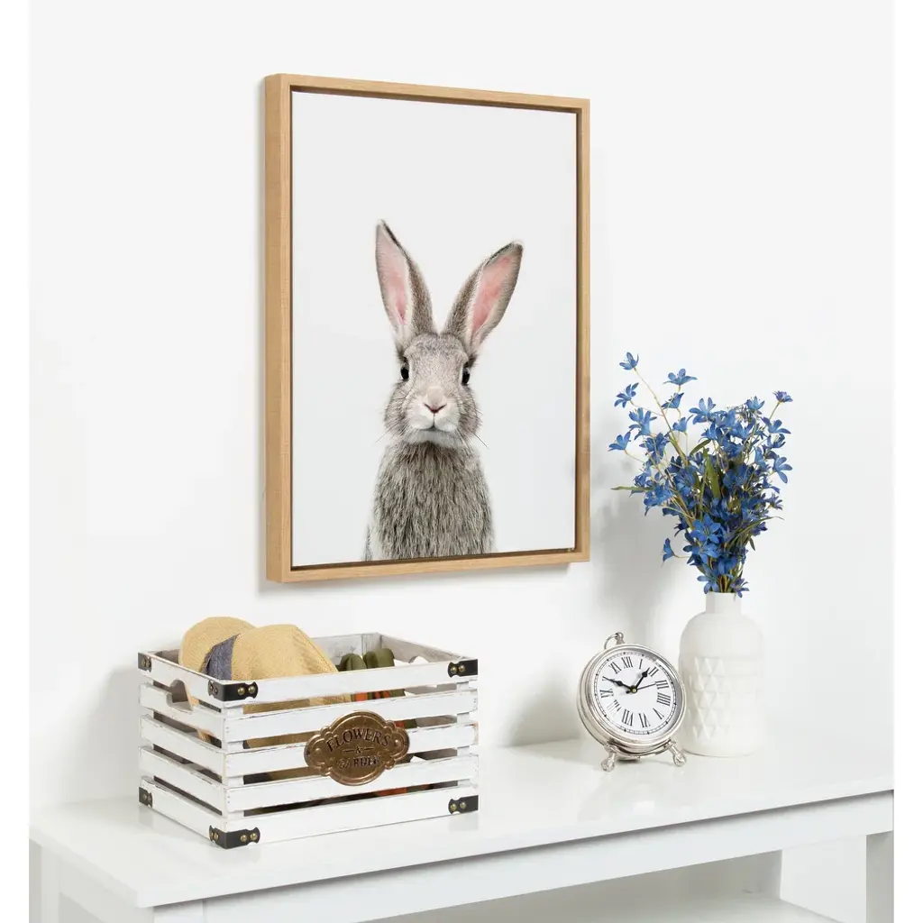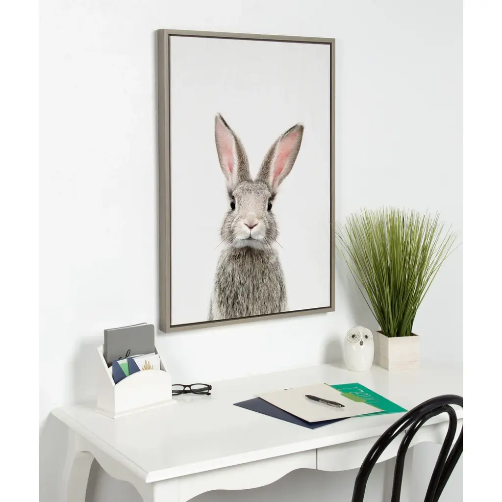 Decorate your living room or bedroom with this Sylvie framed canvas by Amy Peterson. This digital artwork of a young rabbit is printed on a high-quality canvas and framed on a polystyrene frame for a neat finish. The metal sawtooth hangers attached on the MDF back make for easy installation in your home.FRAMED CANVAS ART: Beautiful digital art printed on framed gallery wrapped canvas. Print name: "Studio Female Rabbit" by Amy Peterson.EFFORTLESS HANGING: The metal sawtooth hangers come attached on the inset MDF back for easy wall display.PERFECT SIZE: The frame is a lightweight material with display dimensions of 24 inches high by 18 inches across by 1.6 inches deep.FRAMED IN WISCONSIN: Gallery wrapped canvas is printed and framed in Waunakee, Wisconsin, USA of domestic and imported parts.AUTHENTIC: Digital print on canvas by 2017 Amy Peterson.