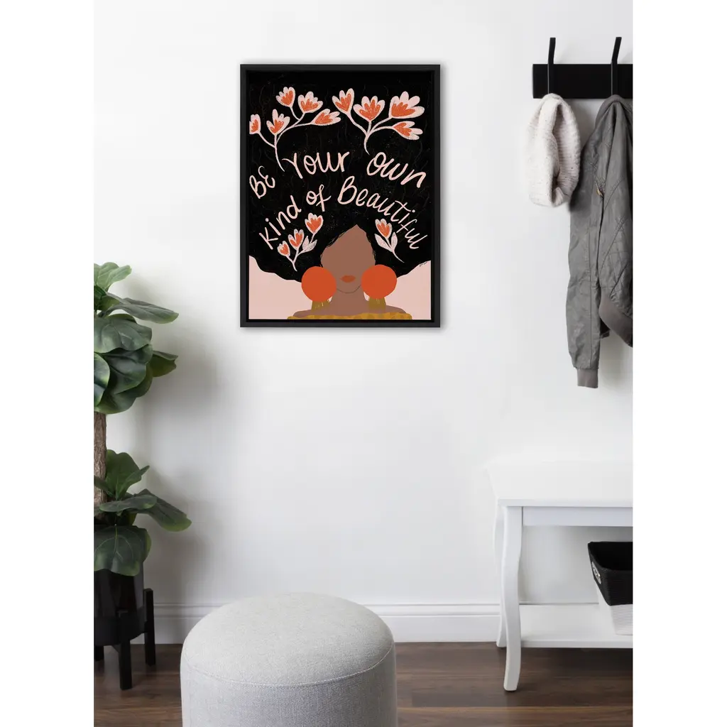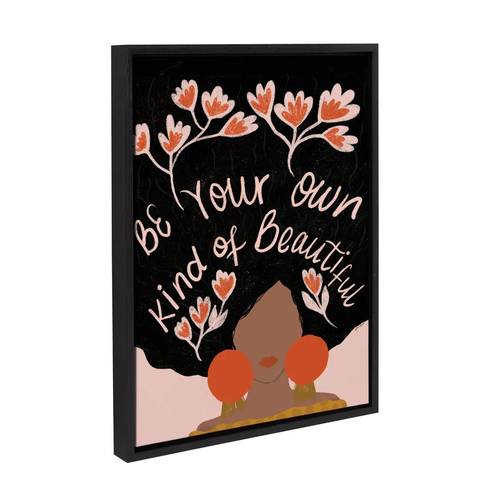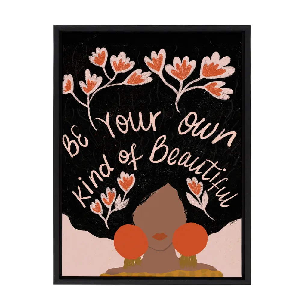 Motivate yourself to search deep within to celebrate your beautiful body and mind with help from this colorful and freeing wall art! Framed in the USA in Waunakee, Wisconsin, this floating canvas art will be a pleasure to look at every day in your living room, bedroom, office, or any room in the home. This art print also makes an excellent gift for birthdays, holidays, or house-warming parties. Printed on gallery-wrapped canvas and framed with a lightweight polystyrene frame, this wall art has two hangers already attached to the MDF back for easy wall display. The outer dimensions are 24 inches by 18 inches by 1.6 inches. Print Name: "Be Your Own Kind of Beautiful"