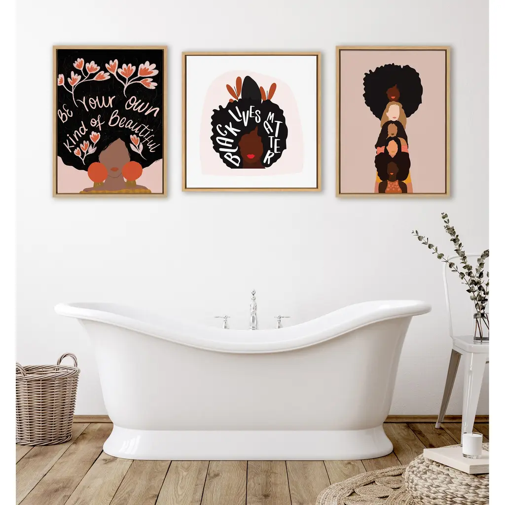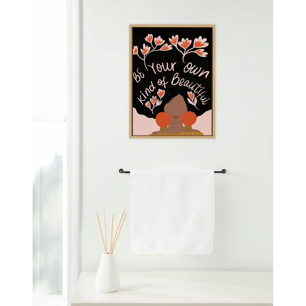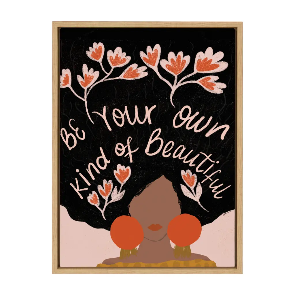 Motivate yourself to search deep within to celebrate your beautiful body and mind with help from this colorful and freeing wall art! Framed in the USA in Waunakee, Wisconsin, this floating canvas art will be a pleasure to look at every day in your living room, bedroom, office, or any room in the home. This art print also makes an excellent gift for birthdays, holidays, or house-warming parties. Printed on gallery-wrapped canvas and framed with a lightweight polystyrene frame, this wall art has two hangers already attached to the MDF back for easy wall display. The outer dimensions are 24 inches by 18 inches by 1.6 inches. Print Name: "Be Your Own Kind of Beautiful"