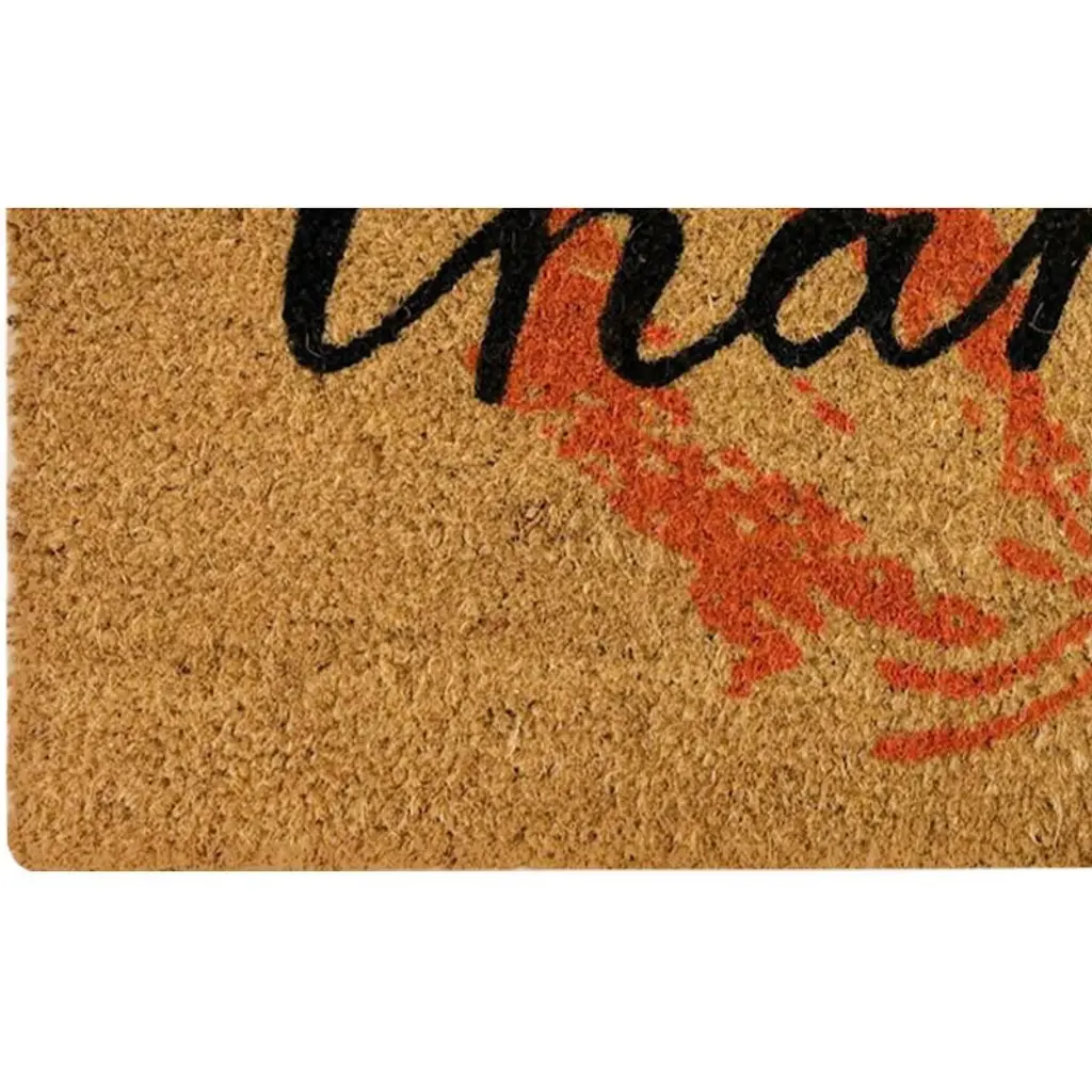 Celebrate the season with this 18x30 inch outdoor welcome mat, designed to bring charm, warmth, and fall harvest character to your doorstep. Crafted from durable natural coir bristles, it withstands heavy foot traffic while scraping away dirt, mud, and debris, keeping your home fresh and inviting. The fade-resistant design ensures long-lasting color vibrancy and style. This outdoor mat celebrates the beauty of the harvest season with artwork that captures pumpkins, falling leaves, and rustic autumn tones. It’s perfect for creating a cozy and festive entryway during family gatherings, Thanksgiving, or crisp fall days. The warm colors and seasonal imagery instantly transform your doorstep into a welcoming space. The sturdy backing helps keep the mat securely in place while preventing slips, making it both safe and reliable indoors or outdoors. Whether placed at your front door, porch, patio, or entryway, it blends practicality with seasonal decor appeal. Simple to maintain, just shake off or brush clean for easy care. Thoughtfully designed to balance durability and beauty, it makes a wonderful gift for neighbors, friends, or anyone who loves holiday decorating. Add this mat to your seasonal collection to instantly elevate your curb appeal and spread festive cheer throughout the season.