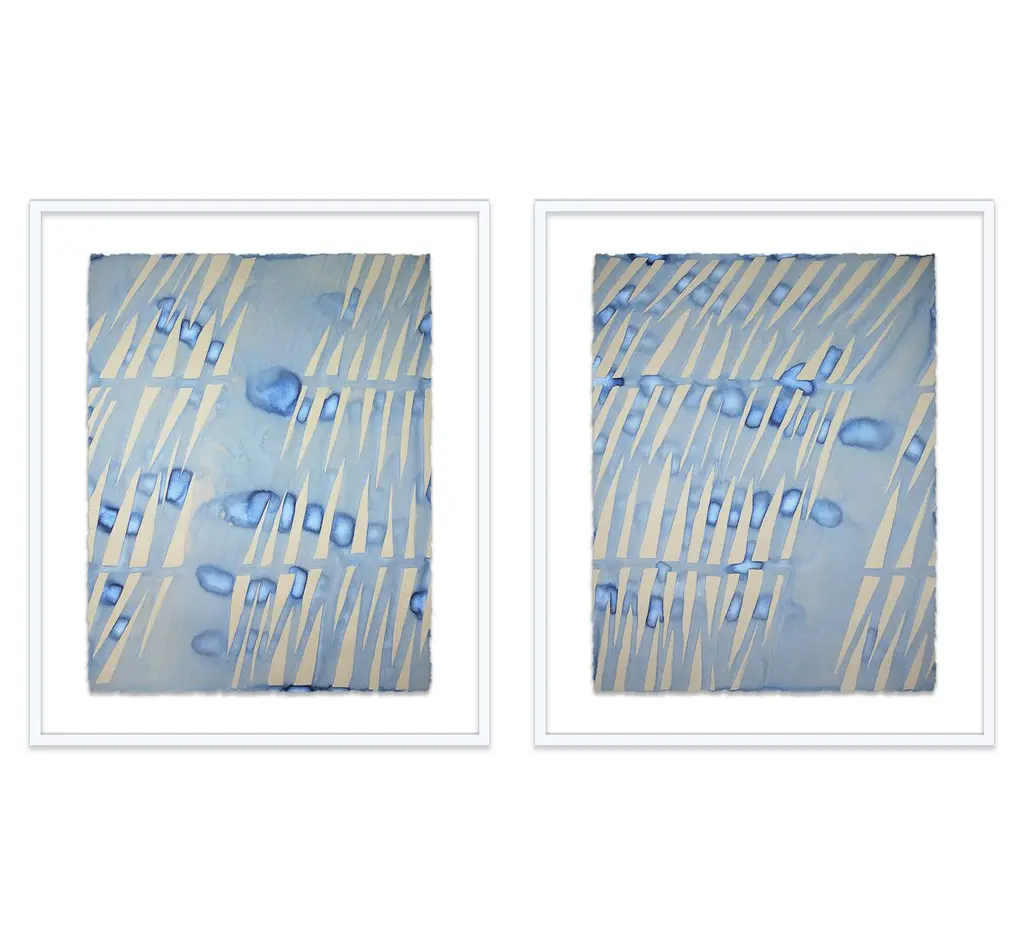 Each piece in this ethereal abstract diptych from Kate Roebuck is printed on deckled paper, floated over a mat, and beautifully framed. Arrives ready to hang.Largely influenced by her studies of textile design, artist Kate Roebuck finds inspiration in form, pattern, color, and texture. Exploring these classical themes, she seeks to create open-ended visual dialogues and to make connections between the creator and the created. Roebuck and her sister-in-law are the creative duo behind Bowerbird, an online studio and collective where they show their work. Born in Pittsburgh, Roebuck has lived in the South for nearly a decade and finds that the slower pace of life provides her ample time to create and explore.