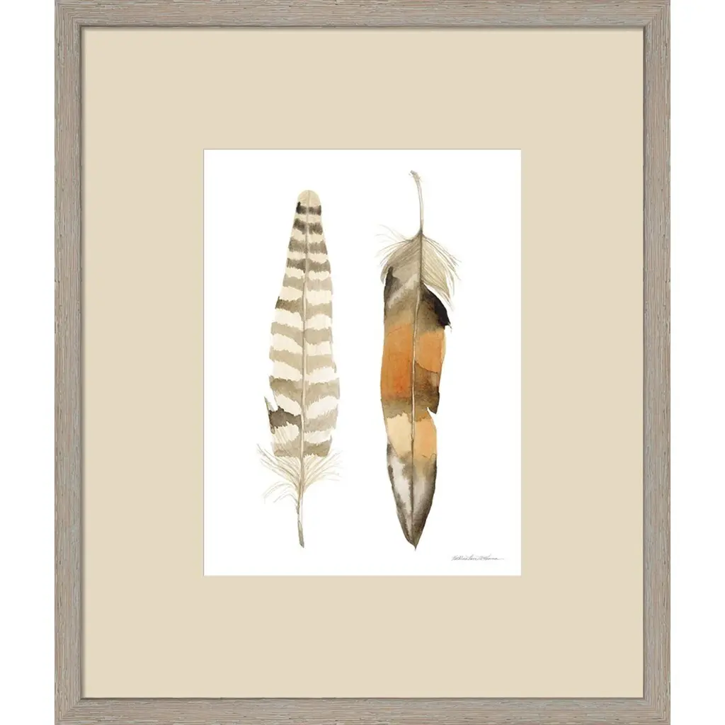 Natural Feathers II by Kathleen Parr McKenna is a high quality piece of framed artwork. The finished size of this piece is 17" X 20". It has a Distressed Aged White Wash frame, is single matted and finished with high quality Acrylic Plexiglass. 100% Satisfaction Guaranteed.