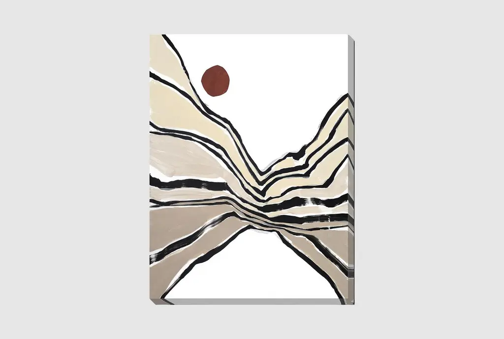 Linear Landscape No. 1 by Katie Beeh is a high quality piece of canvas artwork. The finished size of this piece is 20" X 16", and it has a depth 0.75" with black painted sides. There is a UV protective coating over the entire image, and it is ready to hang on your wall with a standard drywall screw (not included). 100% Satisfaction Guaranteed.