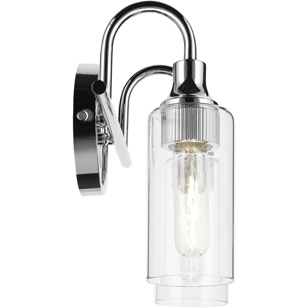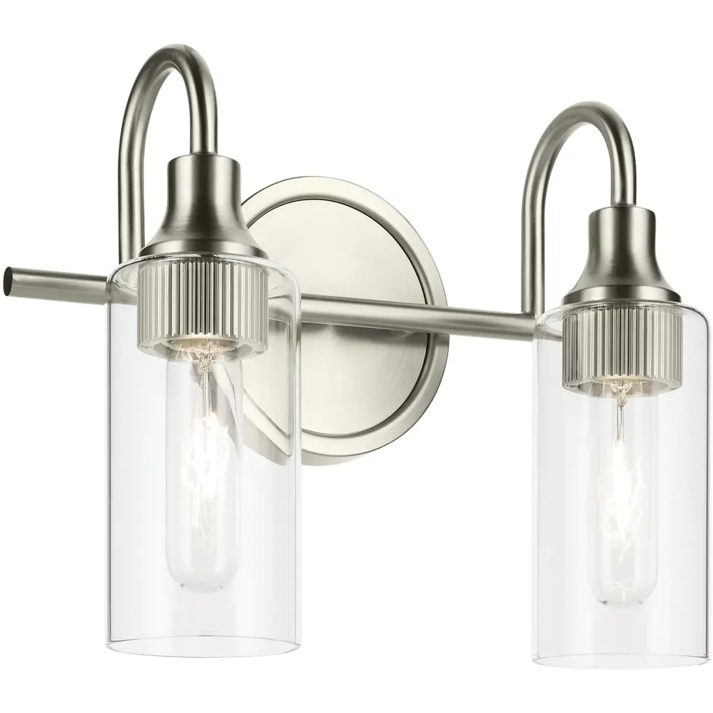 The Kavi 2-light vanity light is as versatile as can be. This fixture features elegant, sleek curves and fine fluted socket detailing to complement any bath space. Its clear glass offers ample lighting to the entire room and its European flare makes it the ultimate addition to soft modern environments.