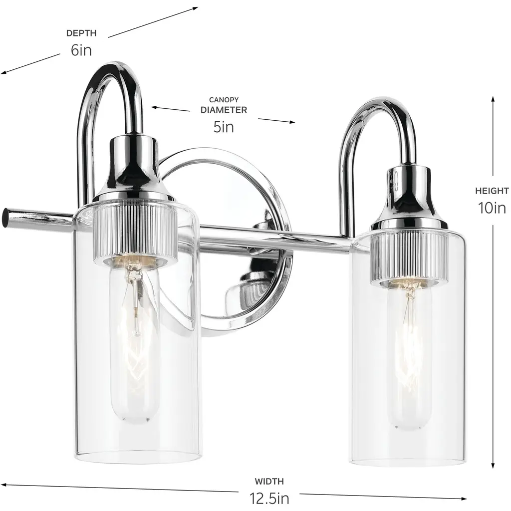 Kavi 2 Light 12.5 Inch Chrome Vanity Light Wall Light