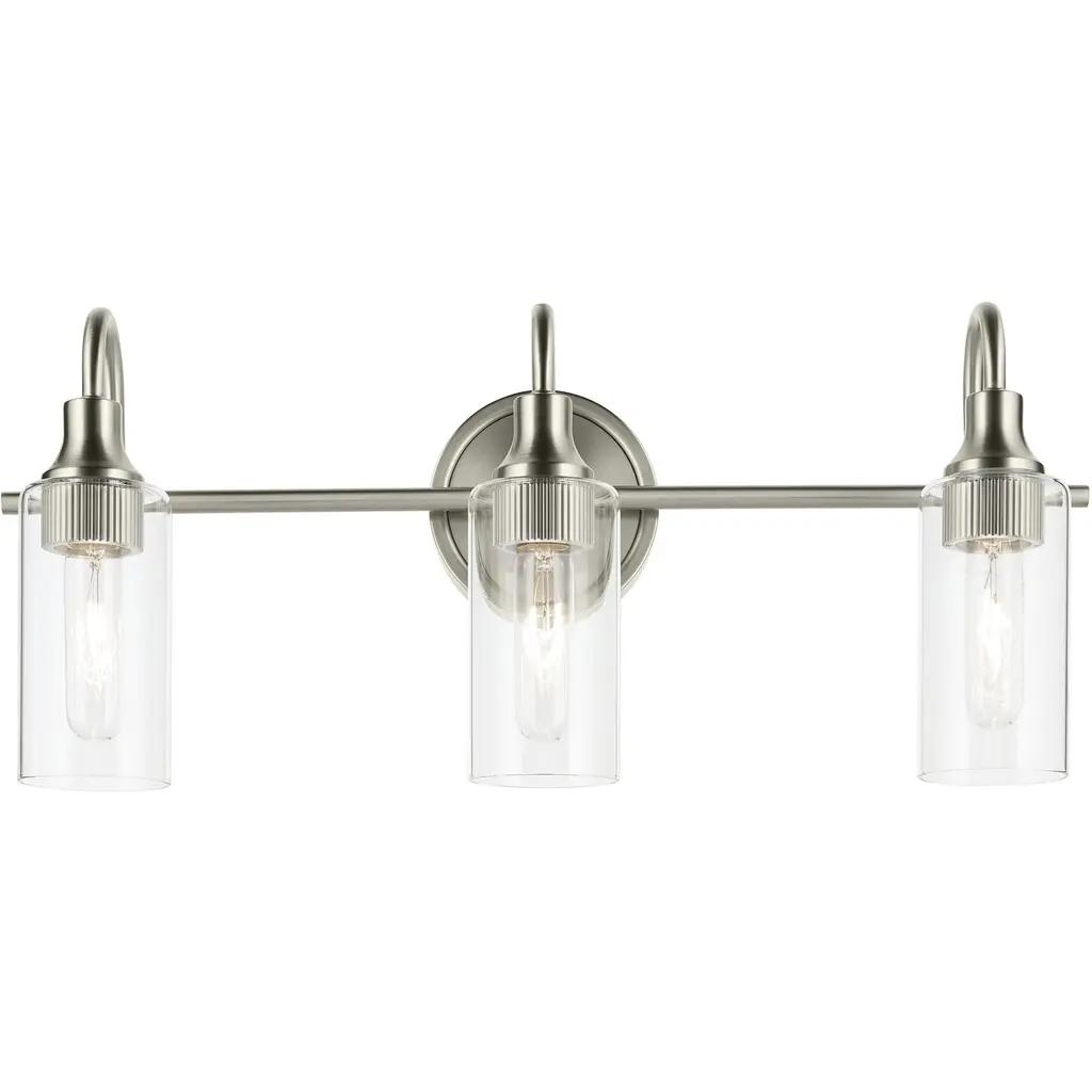 The Kavi 3-light vanity light is as versatile as can be. This fixture features elegant, sleek curves and fine fluted socket detailing to complement any bath space. Its clear glass offers ample lighting to the entire room and its European flare makes it the ultimate addition to soft modern environments.