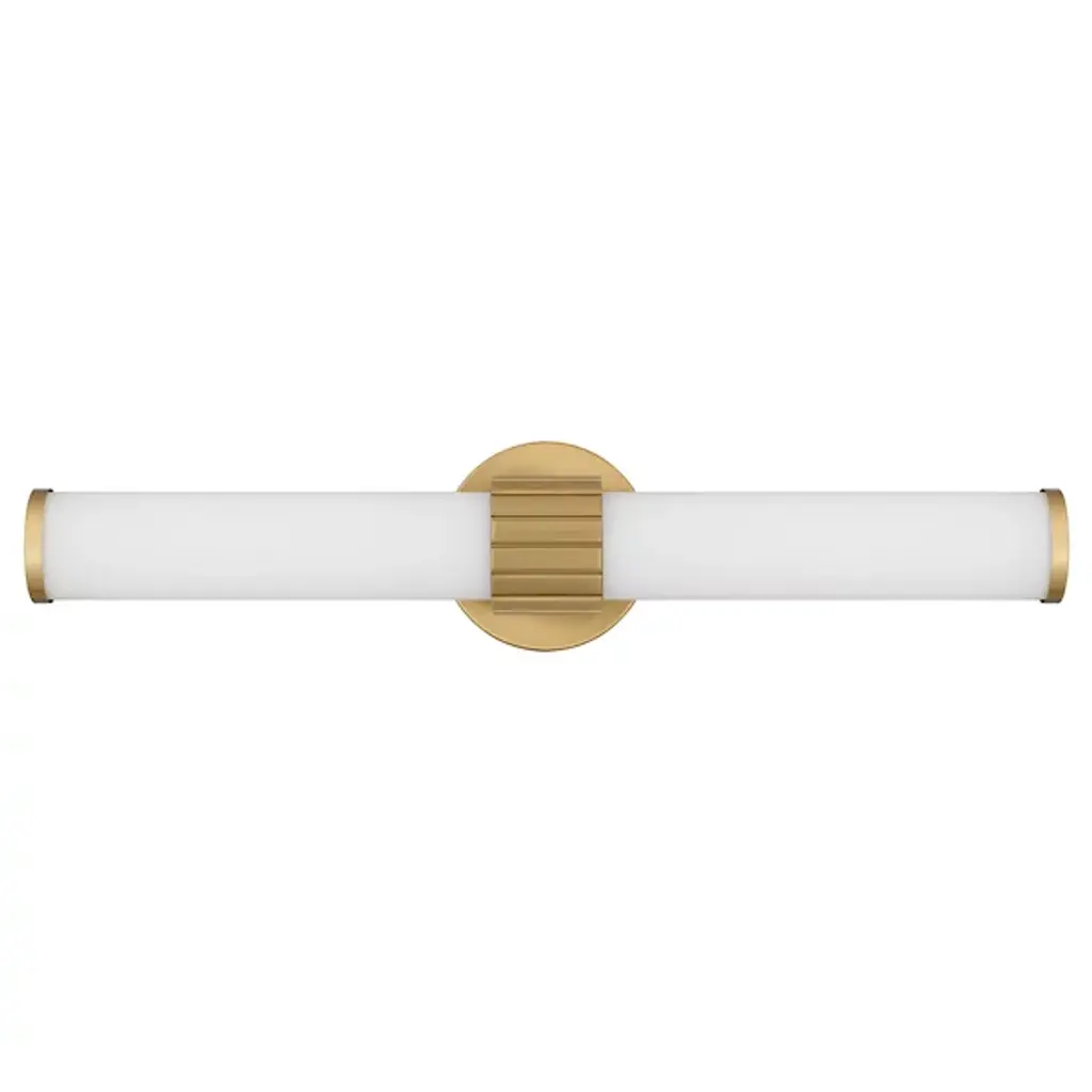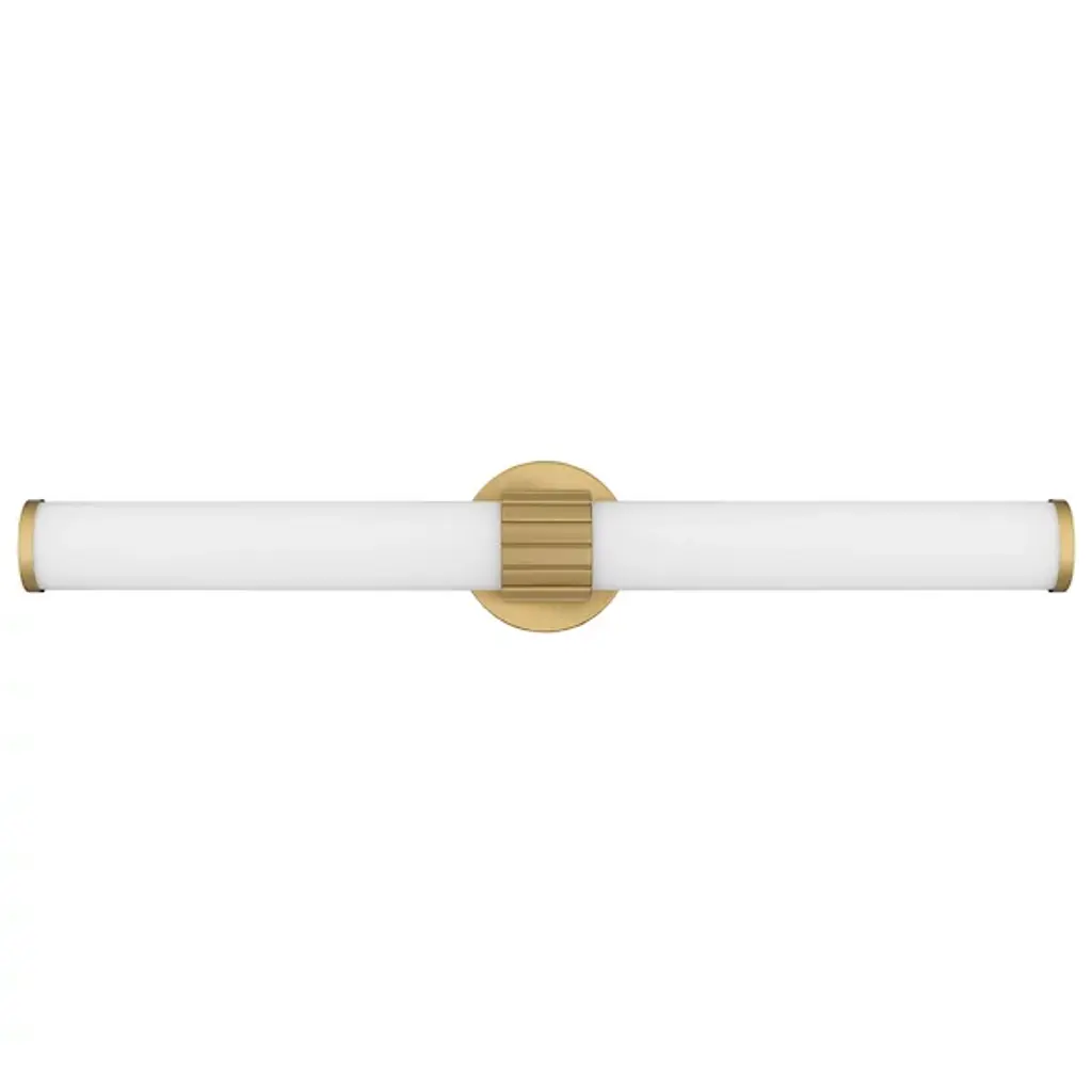 Transform your bathroom with the modern elegance of the Kaye LED Vanity Light by Quoizel. Its streamlined design showcases an integrated LED light source that radiates through the linear etched glass shade, complemented by stylish metal bands. A part of the coveted Platinum by Quoizel collection, these bath lights seamlessly enhance modern or contemporary vanity spaces, infusing them with sophistication and refined style. Illuminate your bathroom with Kaye for a chic and contemporary ambiance.