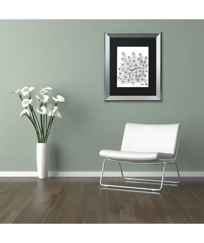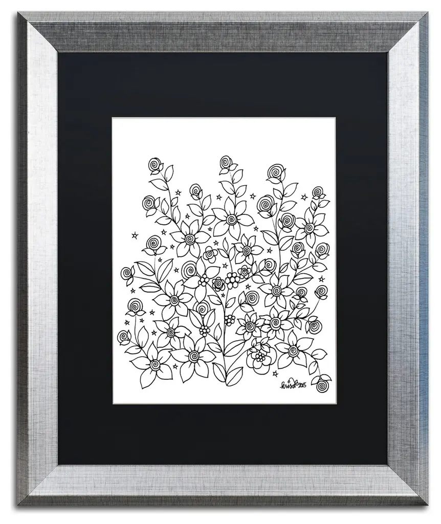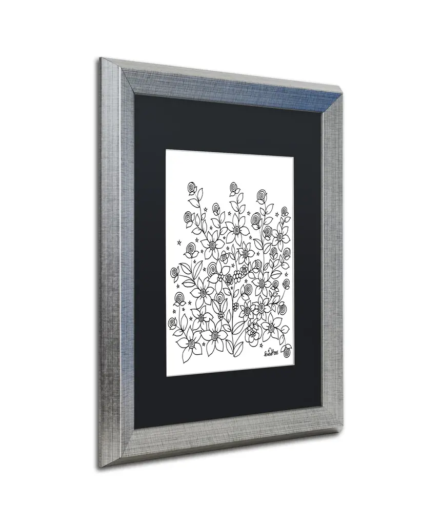 Kcdoodleart 'Simple Flower Doodle 2' Art, Silver Frame, Black Matte, 16"x20"