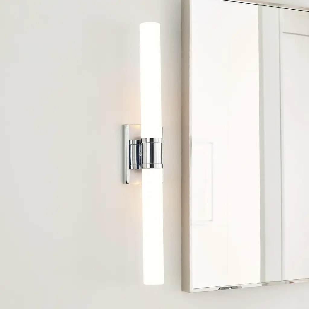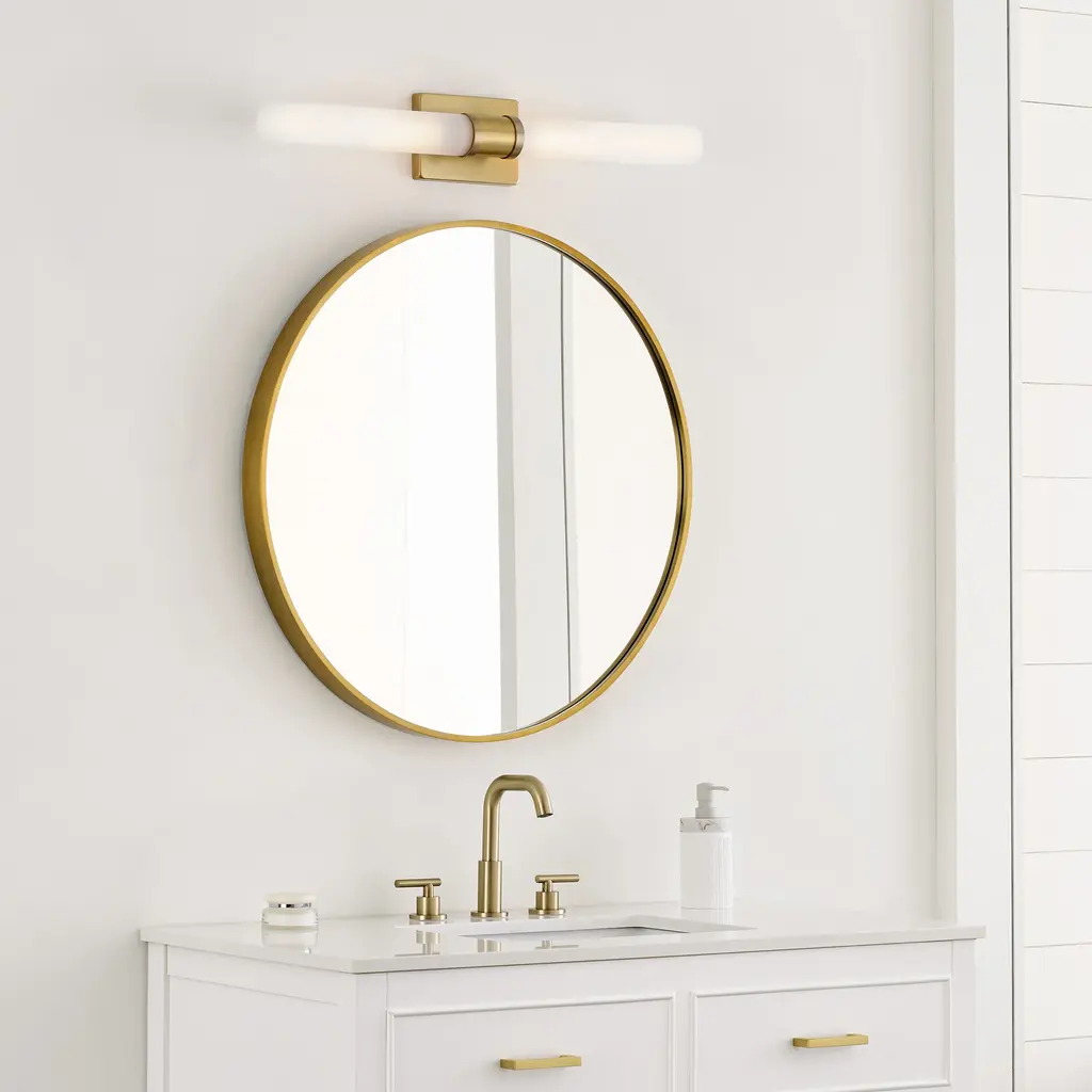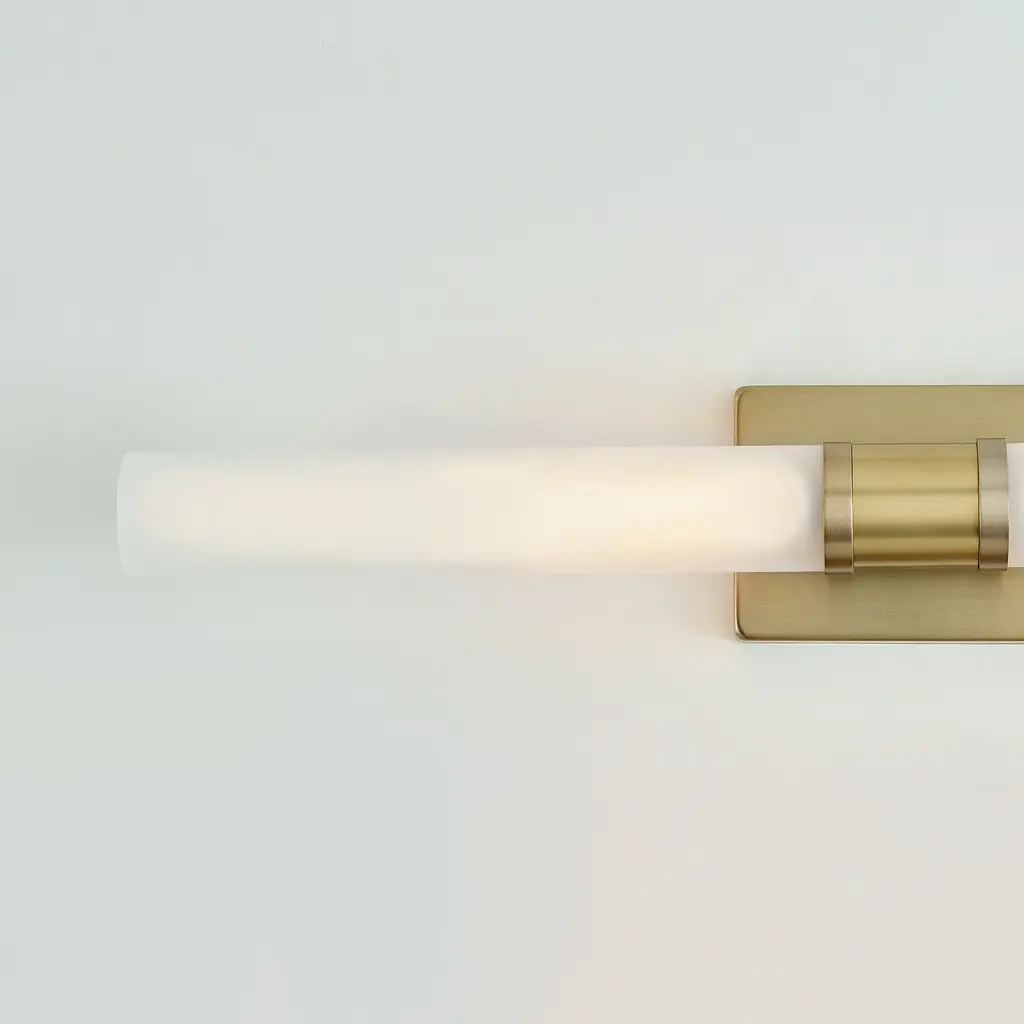 Elevate your primary or guest bathroom with the Keaton Vanity Light from Visual Comfort Studio. Made of sleek metal and featuring a Satin Etched glass shade, this contemporary double sconce adds a touch of sophistication to any space. Available in three luxurious finishes, it's the perfect addition to your modern bath. Highlights