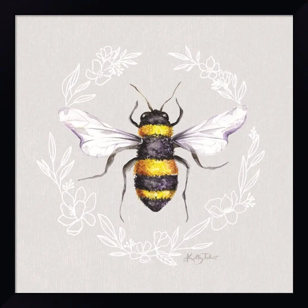 Honey Bee I by Kelley Talent is a high quality piece of framed artwork. The finished size of this piece is 15.5" X 15.5". It has a Petite Black with Flat Front frame and is finished with high quality Acrylic Plexiglass. 100% Satisfaction Guaranteed.