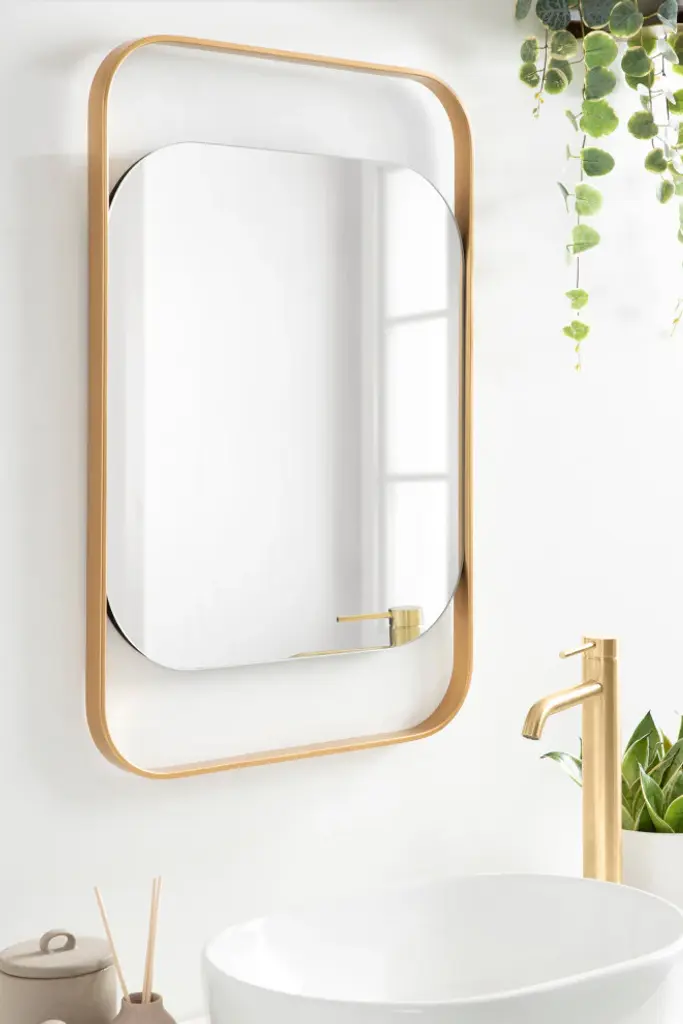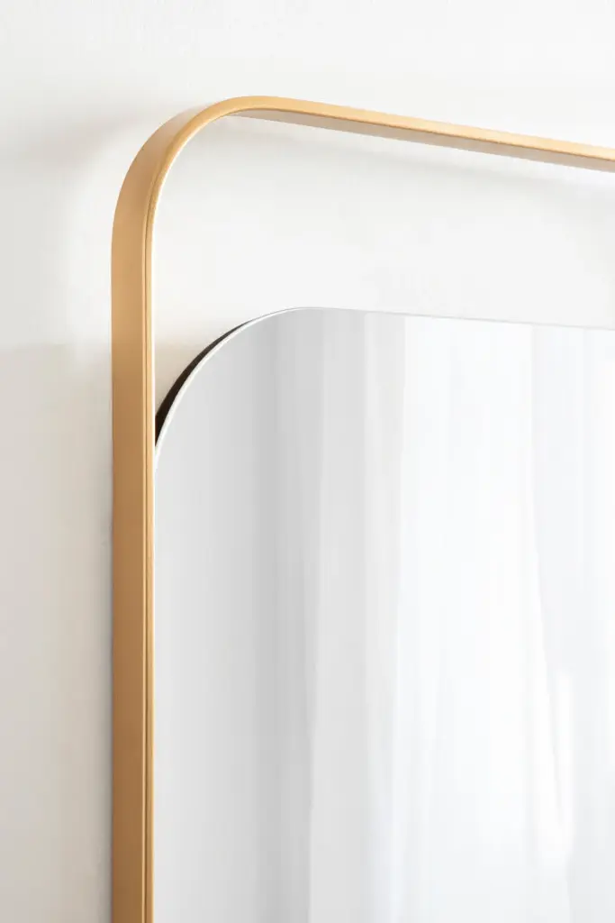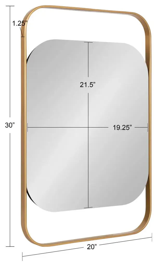The modern look of the glamorous Kellom mirror elevates your home with a captivating and vibrant accent piece. This wall mirror features an intelligent, avant-garde design, with a rounded rectangular frame that extends beyond the reflective glass for a suspended, floating look. The Kellom''s radius rectangle frame is made from robust iron and has a glamorous gold finish to bring vibrancy and an element of glamour to any space it hangs. As a bonus, the Kallum''s unique design also features a 1.25-inch depth, allowing it to add dimension to your room. It''s perfect on its own or as a striking focal point within your wall-mounted home decor, measuring 20" wide by 30" tall. It looks fantastic paired with your living room furniture, as a bathroom mirror above a vanity or entryway console table. Not only does the Kellom''s design make it a captivating accent piece, but its reflective, large surface enhances the light of the room by reflecting it throughout the area. To hang this modern mirror, mount it on a nail with the efficient and straightforward sawtooth hanger attached to the back.• Modern Design: This elegant wall mirror captures attention with its unique design, featuring suspended glass within a radius rectangle frame, complete with a gold finish to bring glamour to any room• Quality Material: The Kellom''s rounded rectangular frame is constructed from robust iron material, making it look elevated while providing long-lasting construction• Large Size: Create an eye-catching focal point within your wall decor with the Kellom''s robust size, measuring 20" wide by 1.25" deep by 30" tall• Versatile: This unique take on the modern mirror is the perfect home decor statement to feature in various spaces, making a lasting impression in your living room, entryway, bathroom, or bedroom • Easy to Hang: To create a quick and efficient wall-mounting process, the Kellom wall mirror includes a metal sawtooth hanger attached to the back of the frame