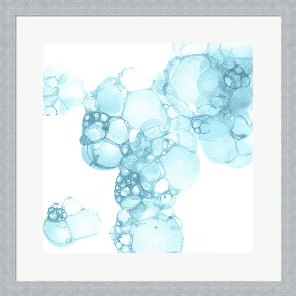 Bubble Square Aqua I by Kelsey Wilson is a high quality piece of framed artwork. The finished size of this piece is 19.5" X 19.5". It has a Slim Platinum Silver frame, is single matted and finished with high quality Glass. 100% Satisfaction Guaranteed.