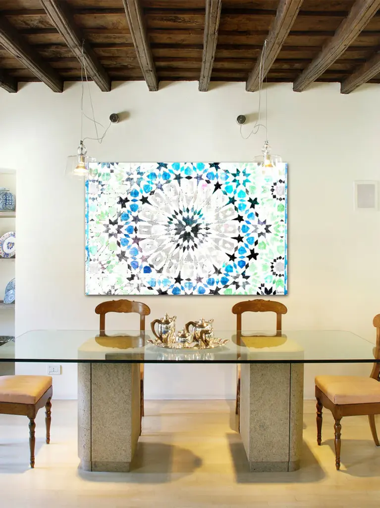 Striking and unique, the "Kenitra" Fine Art Canvas Print by Parvez Taj will bring your walls to life. Printed on canvas, this 45 inch wide by 30 inch tall contemporary artwork will make a statement in any living room, dining room, or bedroom.- Fine art canvas print by Parvez Taj- Professionally hand stretched- Gallery wrapped in sustainable, non-warping wood- Arrives ready to hang- Made in the USA- Includes a certificate of authenticity- Artist signature on the front