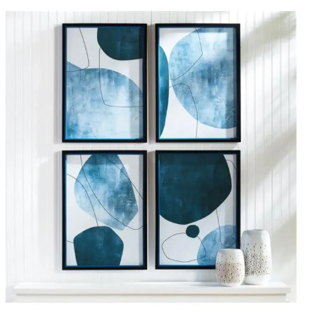 The Abstract Ecliptic Print Set In a playful use of line, form and composition, these abstract prints are the definition of modern. Finished off with black shadowbox frame with blue detail, they are designed to impress. Perfect for above an entry console, dining room wall or guest bedroom. 19.75 x .75 x 27.5 Size Each. Care & Use: Interior use only. Clean with dry cloth. New & designer floor samples from one of the hottest To The Trade & Retail Home Furnishings showrooms in the country. Located in Chicago's chic Roscoe Village, Kenneth Ludwig Chicago carries the industries best furniture & accessory brands. Always fresh, always inspiring. Quite often ( due to a discontinued style, fabric or frame ) they must sell off their showroom floor samples. You receive first quality pieces at amazing prices!