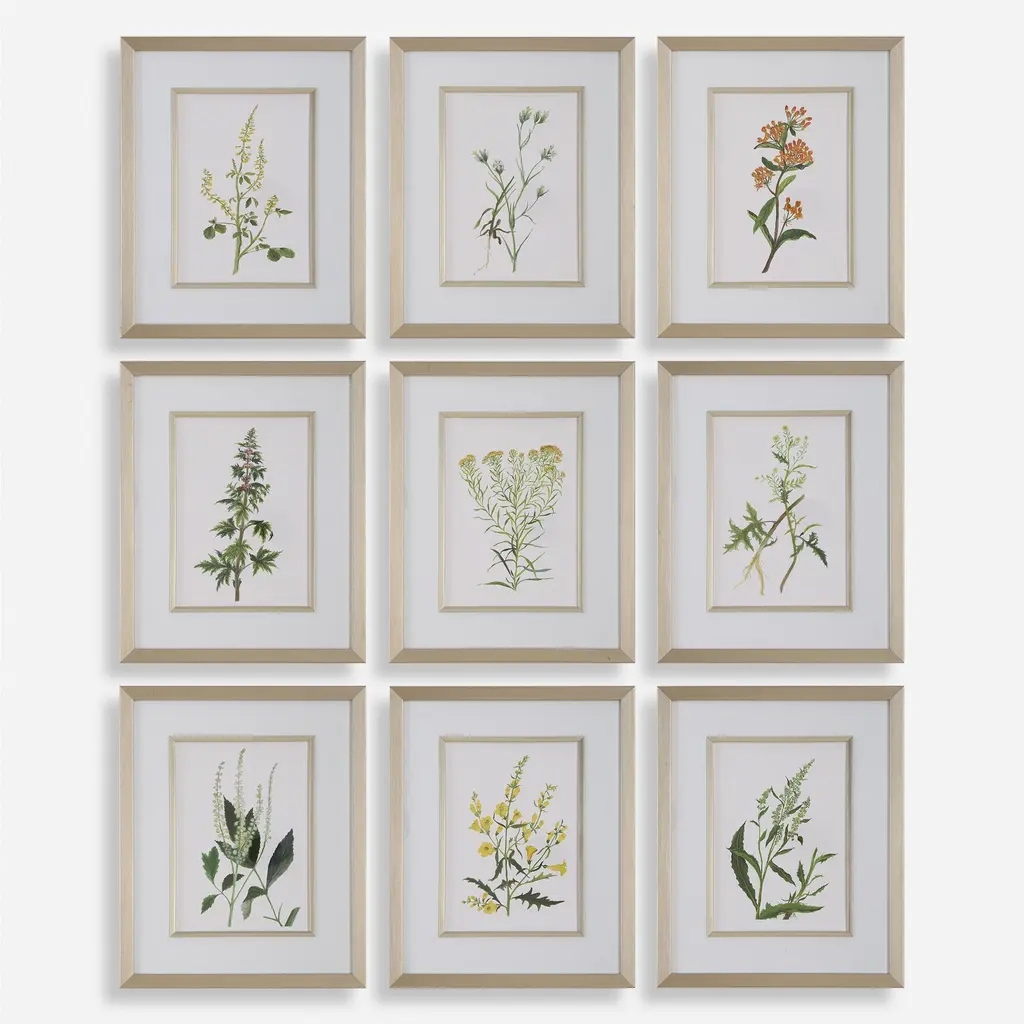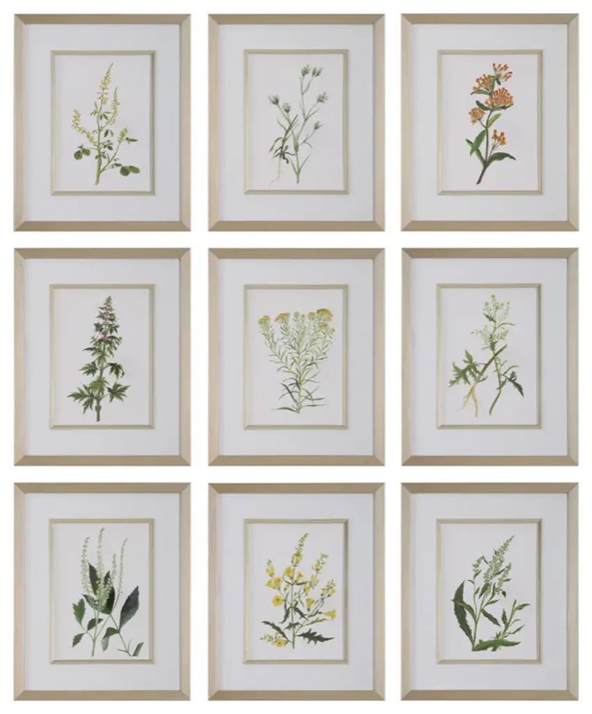 Illustrated in the style of a botanist's research, this leaf study set is proof of nature's beauty. Finished off with simple light wood frames. The perfect setting for a bedroom, study or sun room. Interior use only. Clean with dry cloth. Measures: 19.75 x. 75 x 27.5 Each Designer floor Samples & new product from one of the hottest To The Trade & Retail Home Furnishings showrooms in the country. Located in Chicago's chic Roscoe Village, Kenneth Ludwig Chicago carries the industries best furniture & accessory brands. Always fresh, always inspiring. Quite often ( due to a discontinued style, fabric or frame ) they must sell off their showroom floor Samples. You receive first quality pieces at amazing prices. Check back weekly for new inventory added.