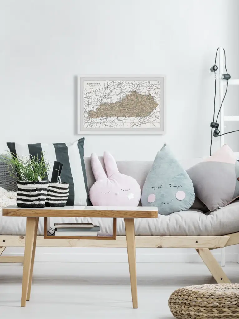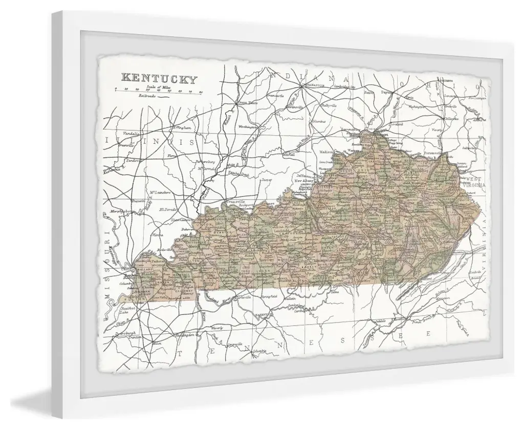 This map features the entire state of Kentucky and what each city has to offer. Proudly printed in the USA, this piece is printed on high quality archive paper and professionally hand-framed. With wall-mounting hooks included, this artful accent is ready to hang up as soon as it reaches your front door.- Top quality Gicle print on high resolution Archive Paper- Hand cut deckled edges- High quality durable non-warping frame- Finished under shatter resistant plexiglass- Arrives ready to hang- Includes a certificate of authenticity- Printed in the USA