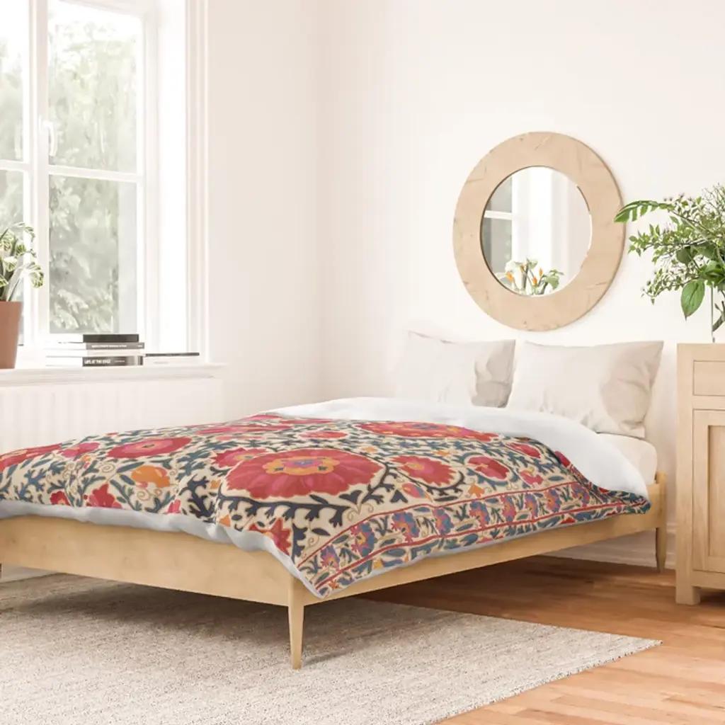 Kermina Suzani Uzbekistan Embroidery Print Duvet Cover
