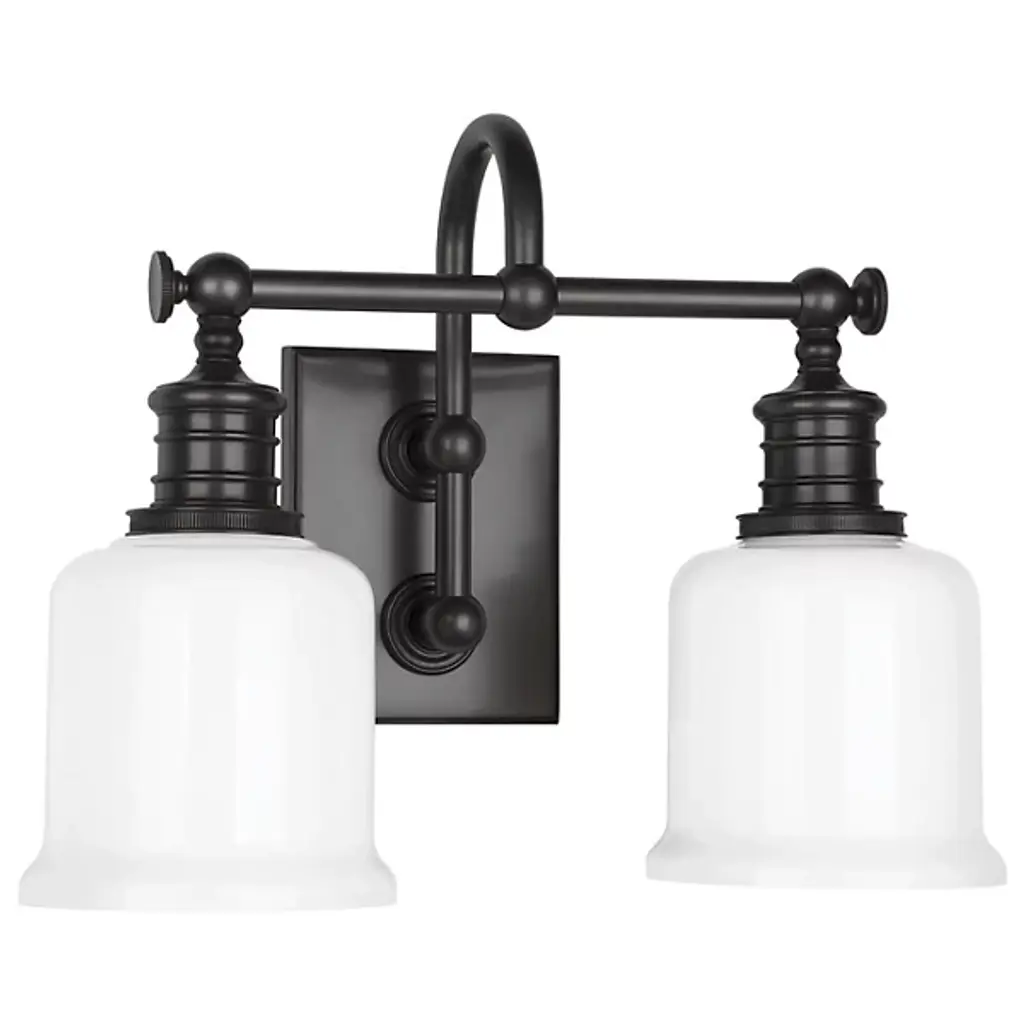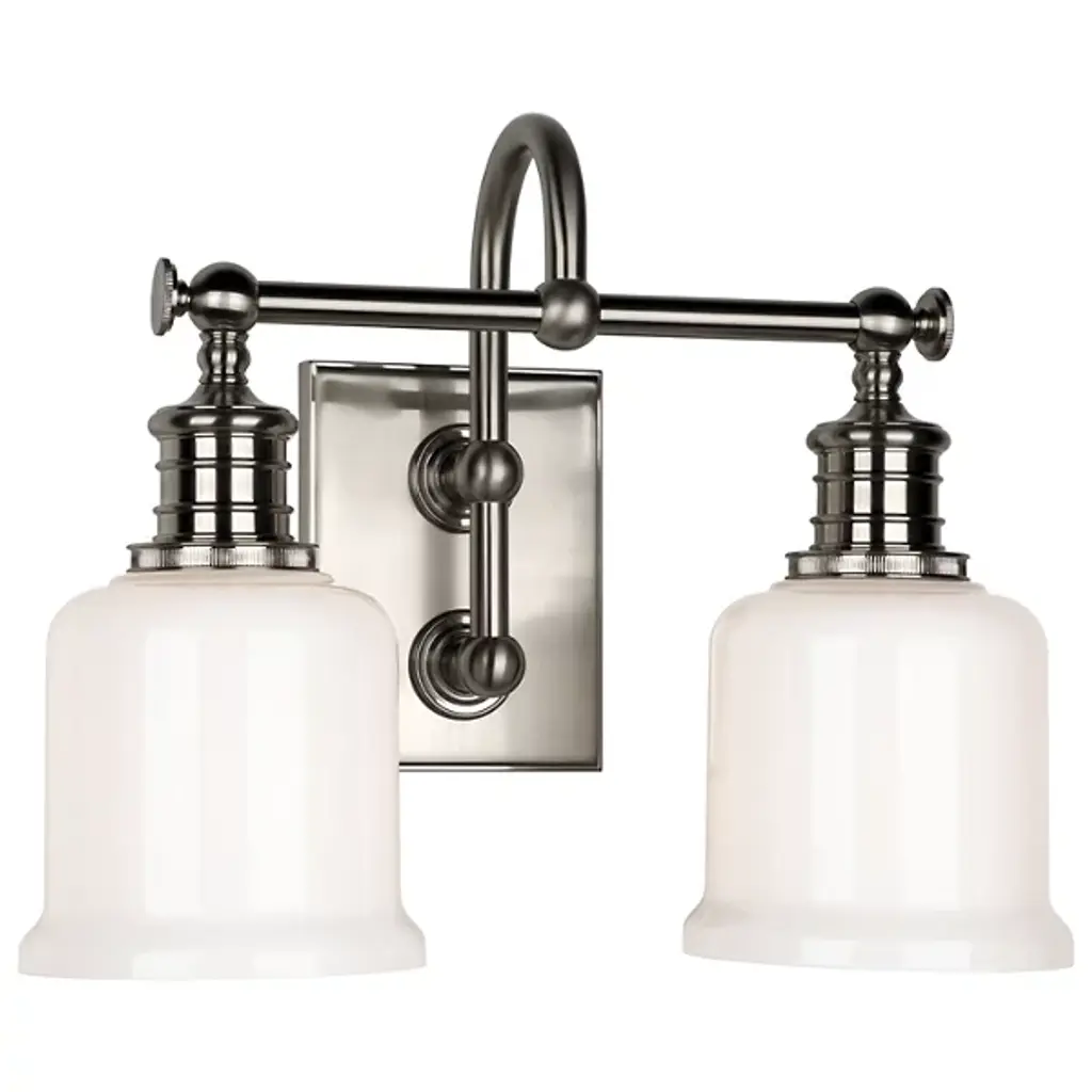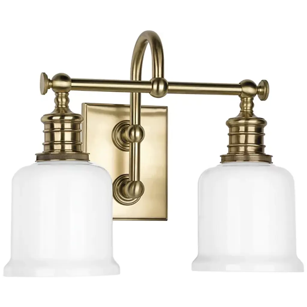 The Keswick Vanity Light by Hudson Valley Lighting has a combination of strength and refinement that is equally at home on an English mantle or in a Soho flat. Its J-shaped arm is double-mounted, creating a durable and appealing design. Bell-shaped glass, cast swivels, and straight-line knurling on the socket holders enhance the collection’s vintage character.