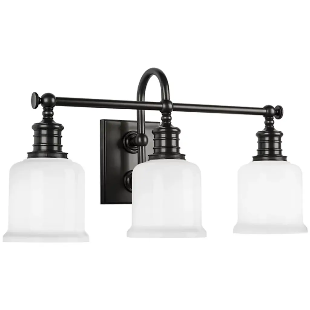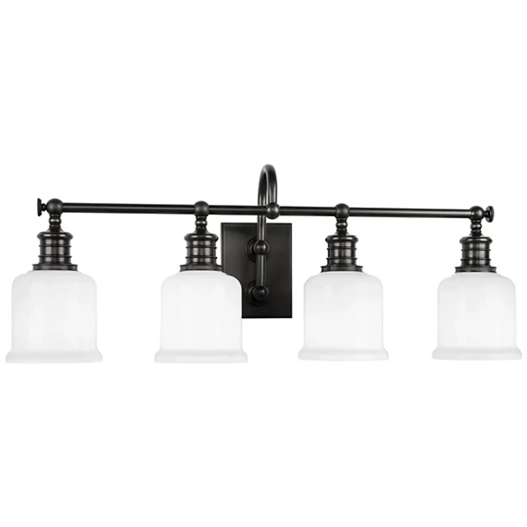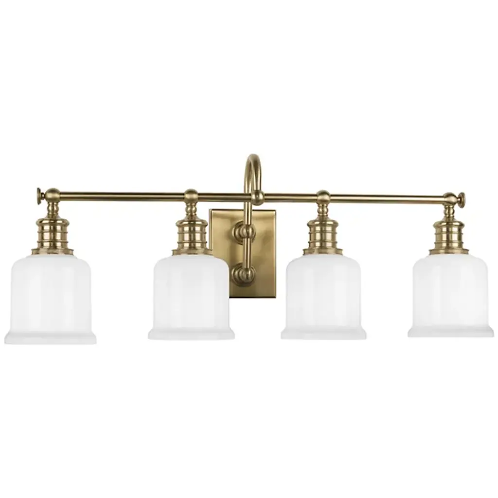 The Keswick Vanity Light by Hudson Valley Lighting has a combination of strength and refinement that is equally at home on an English mantle or in a Soho flat. Its J-shaped arm is double-mounted, creating a durable and appealing design. Bell-shaped glass, cast swivels, and straight-line knurling on the socket holders enhance the collection’s vintage character.