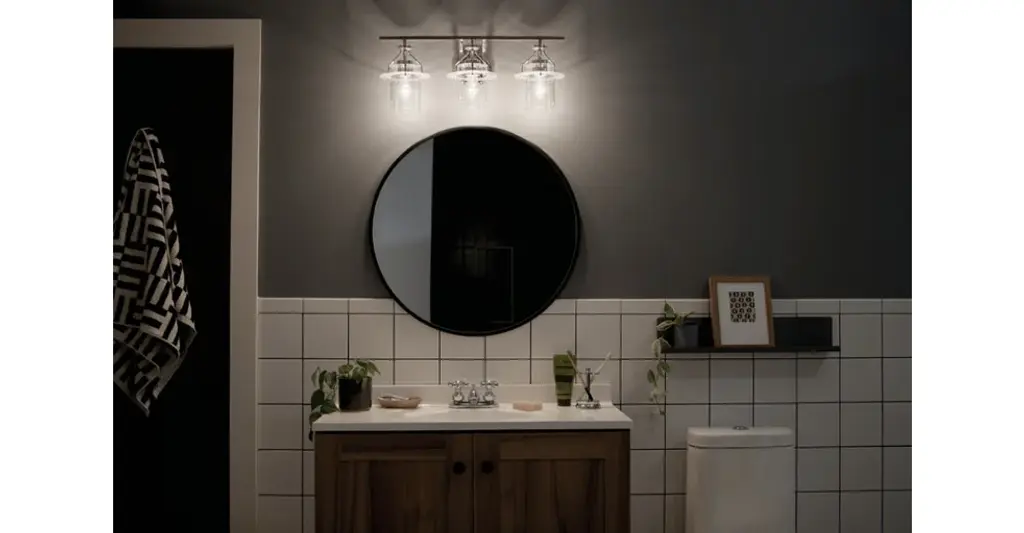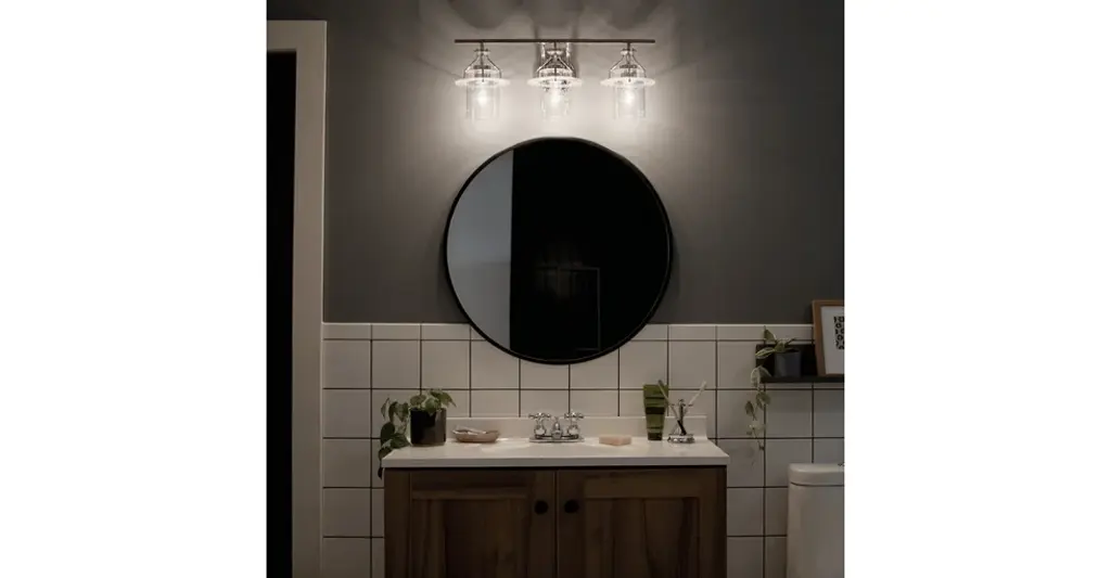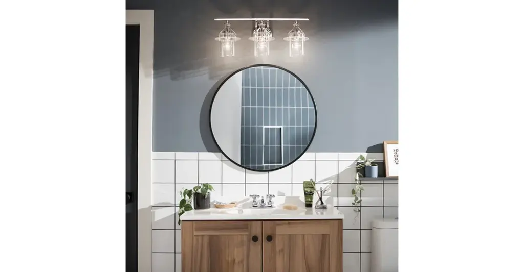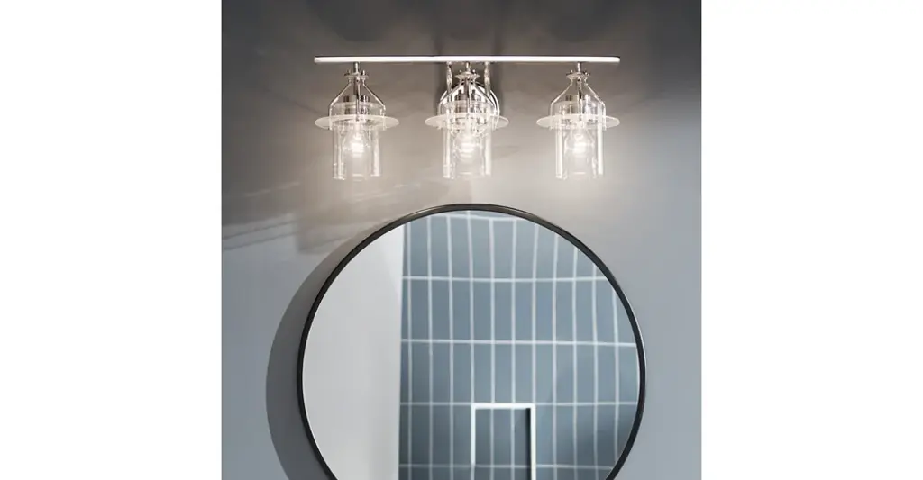 Features Clear glass allows the light to shine both down and out for a slightly linear effect Get everything you want with this luxe industrial collection: stay luxury and stay edgy A delicate floating disc motif complements the collection's utilitarian design, making it a recipe for a versatile, dynamic, and timeless look Constructed of steel Fixture includes clear glass shades (3) 75 watt maximum medium (E26) bulbs required Dimmable with compatible dimming bulbs Mountable in different orientations ETL rated for damp locations Covered under a 1 Year Limited manufacturer warranty Dimensions Height: 9-1/2" Width: 24" Extension: 8-1/2" Product Weight: 4.75 lbs Shade Height: 5-3/4" Shade Width: 4" Shade Depth: 4" Backplate Height: 5" Backplate Width: 5" Backplate Depth: 1" Electrical Specifications Number of Bulbs: 3 Max Watts Per Bulb: 75 watts Bulb Base: Medium (E26) Bulb Shape: A19 Bulbs Included: No