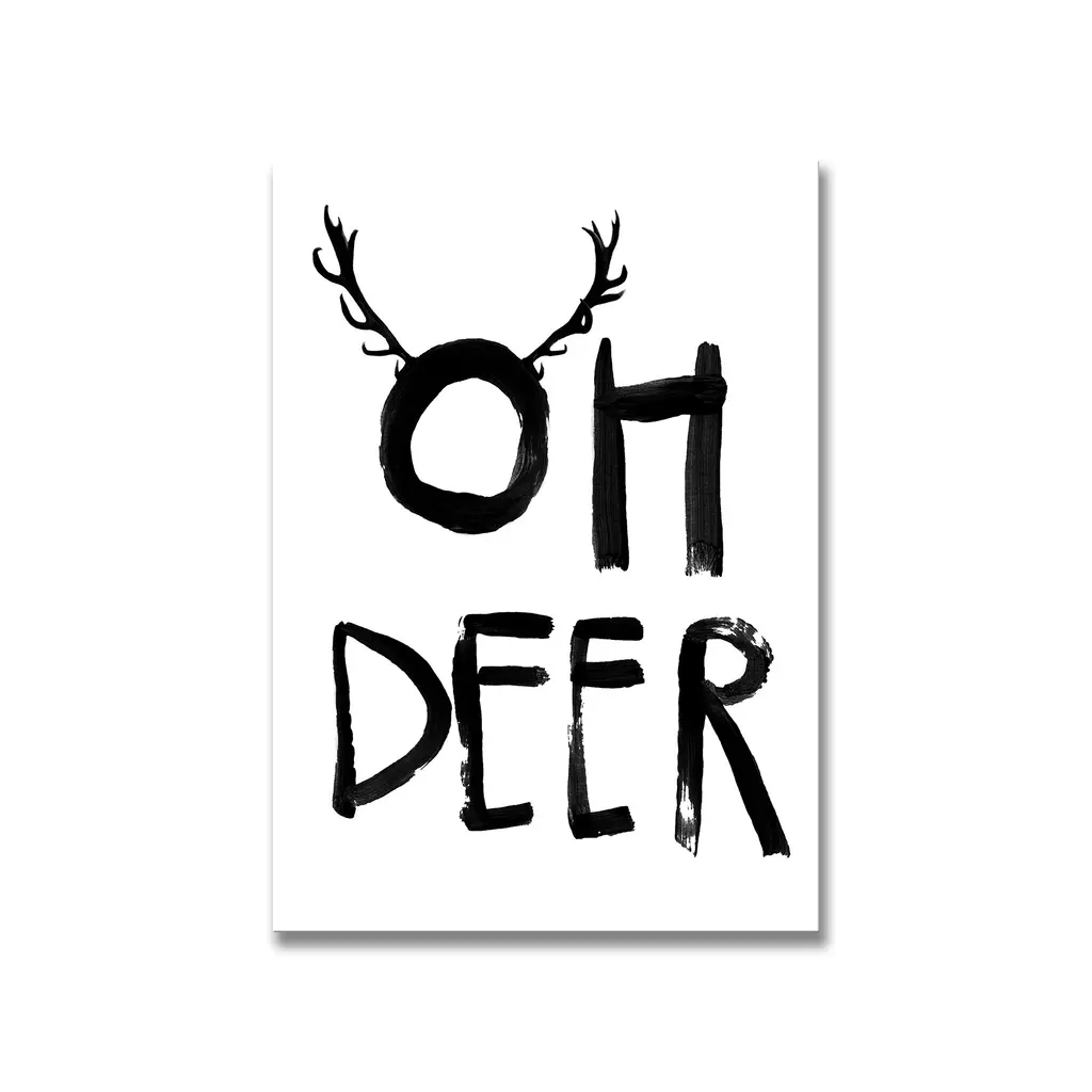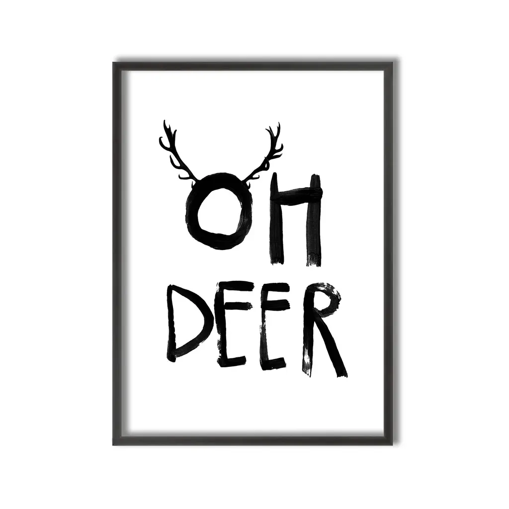 Framed kids art print Oh Deer by artist Treechild is a fun addition to any nursery & kid's room decor. It features typography stating "oh deer" with small deer antlers—making it a fun addition. This piece is handcrafted in Chattanooga, Tennessee by Ready2HangArt, using eco-friendly practices. The print is archival with a white border, assembled in a 100% pine wood frame and finished with hardware for simple installation.
