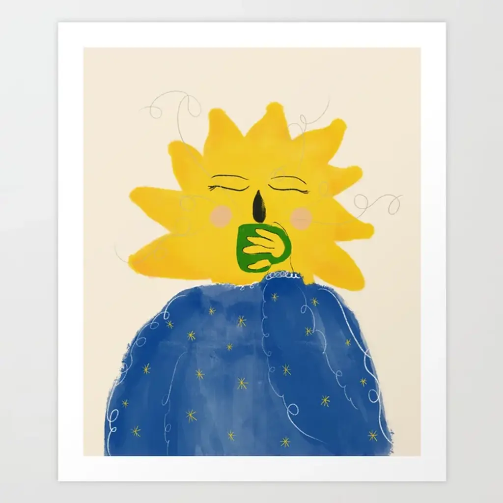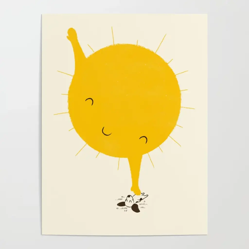 Framed kids art print Sun and Rain Lion by artist Treechild is a fun addition to any nursery & kid's room decor. It features a sun with a smiling face sitting in the center of this piece, surrounded by rain clouds - making it a playful design. This piece is handcrafted in Chattanooga, Tennessee by Ready2HangArt, using eco-friendly practices. The print is archival with a white border, assembled in a 100% pine wood frame and finished with hardware for simple installation.