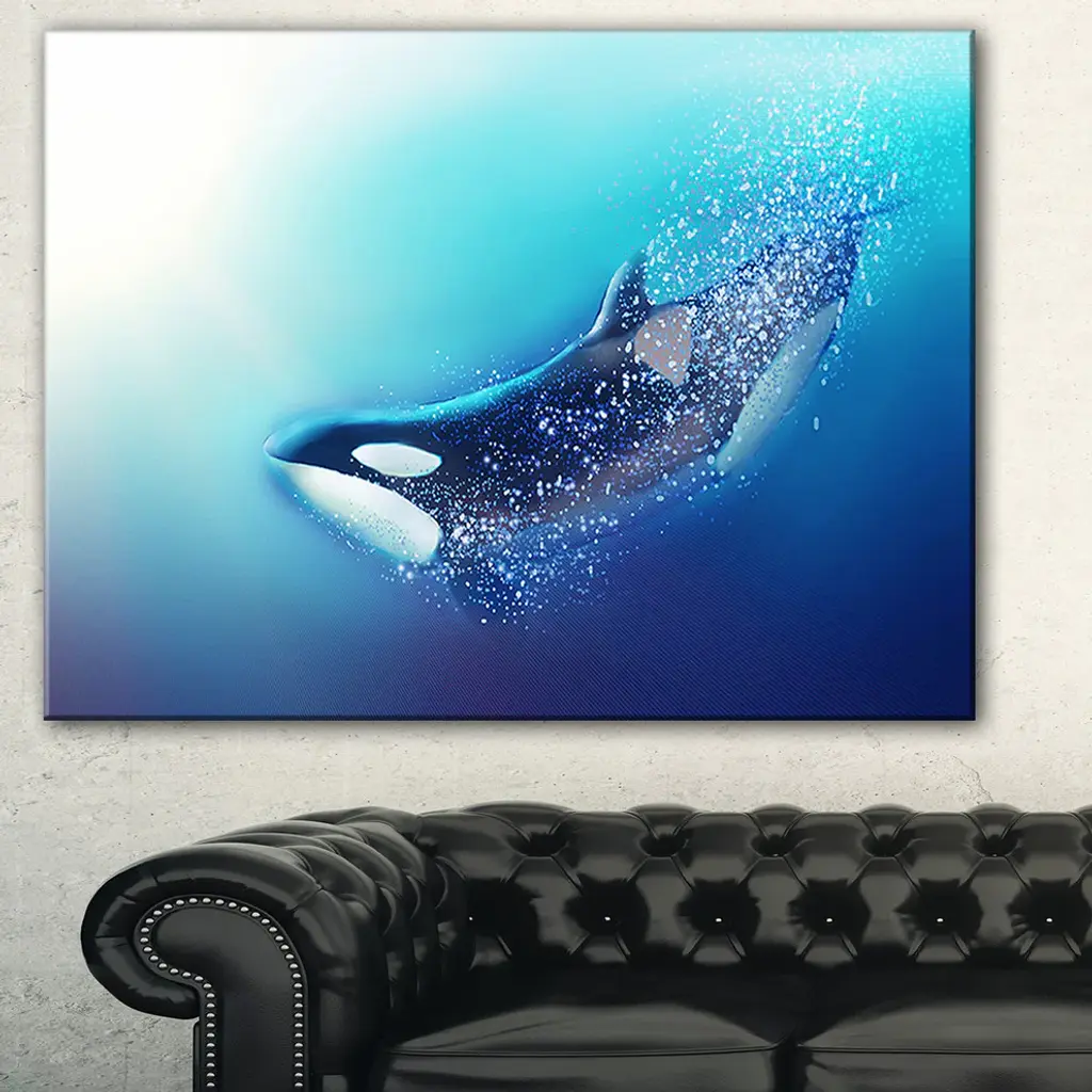 "Killer Whale And Sea" Animal Digital Art Canvas Print, 40"x20"